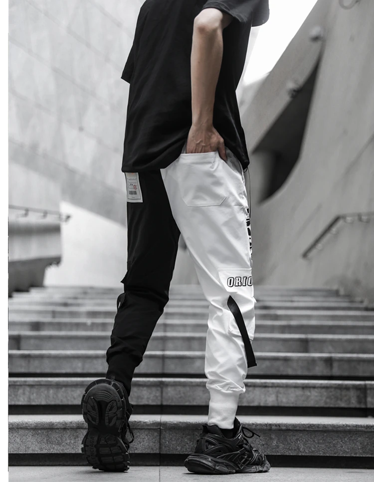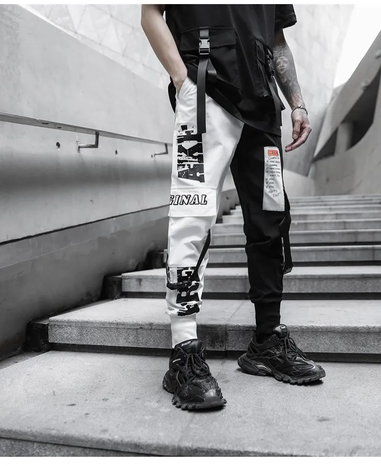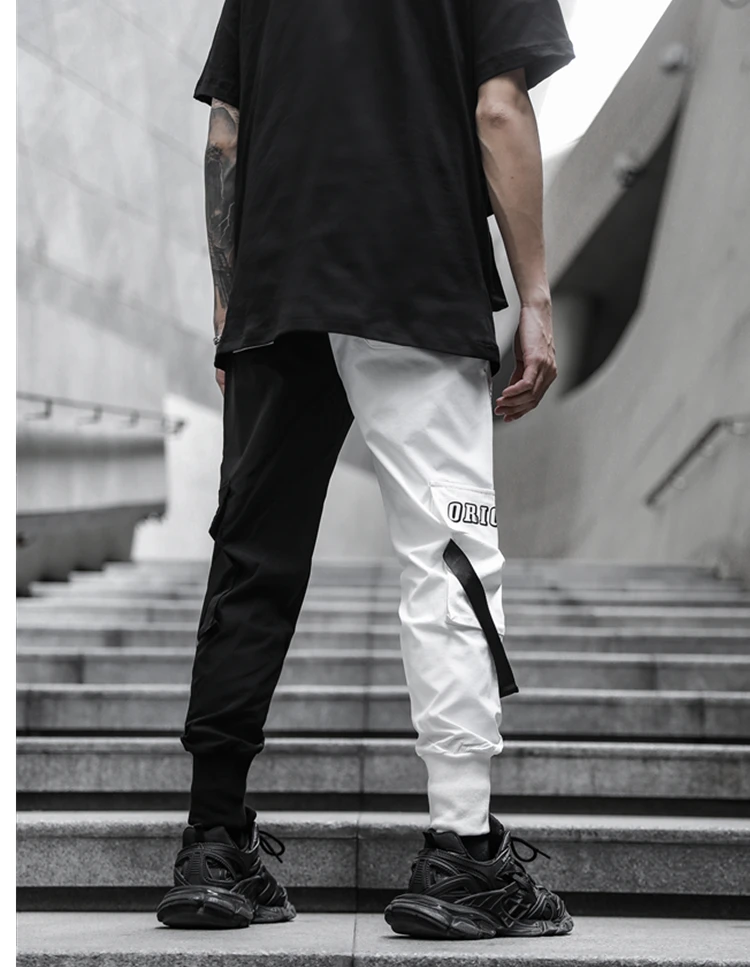 IiDossanбрюки-карго в стиле хип-хоп, мужские весенние черно-белые Лоскутные Комбинезоны, женские уличные хлопковые брюки с карманами, Techwear