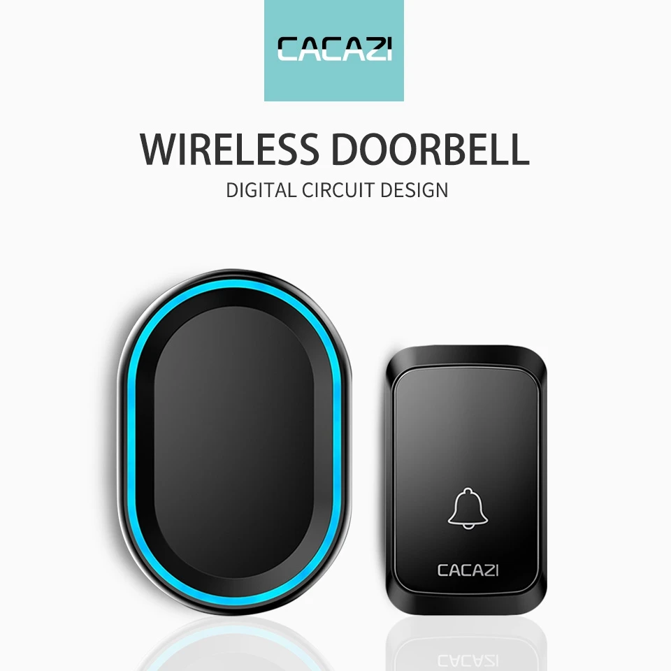 Звонок дверной CACAZI беспроводной водонепроницаемый, 300 м, 60 мелодий, 5 громкости, 0-дБ