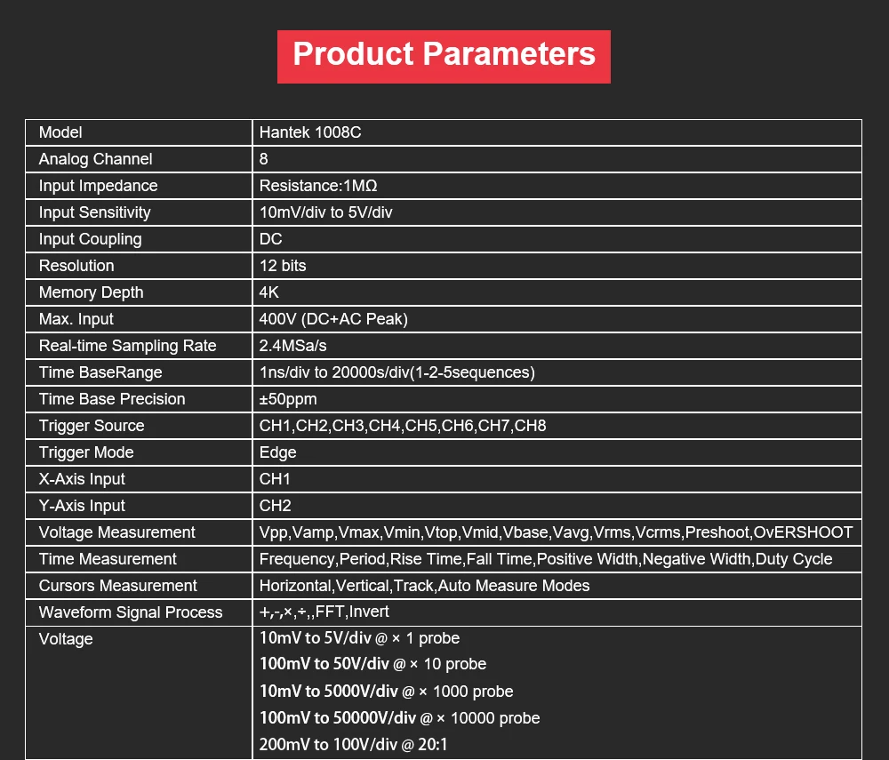 Осциллограф автомобильный Hantek 1008C, 8 каналов, диагностика автомобиля, генератор сигналов, USB накопитель, Осциллограф с щупом зажигания
