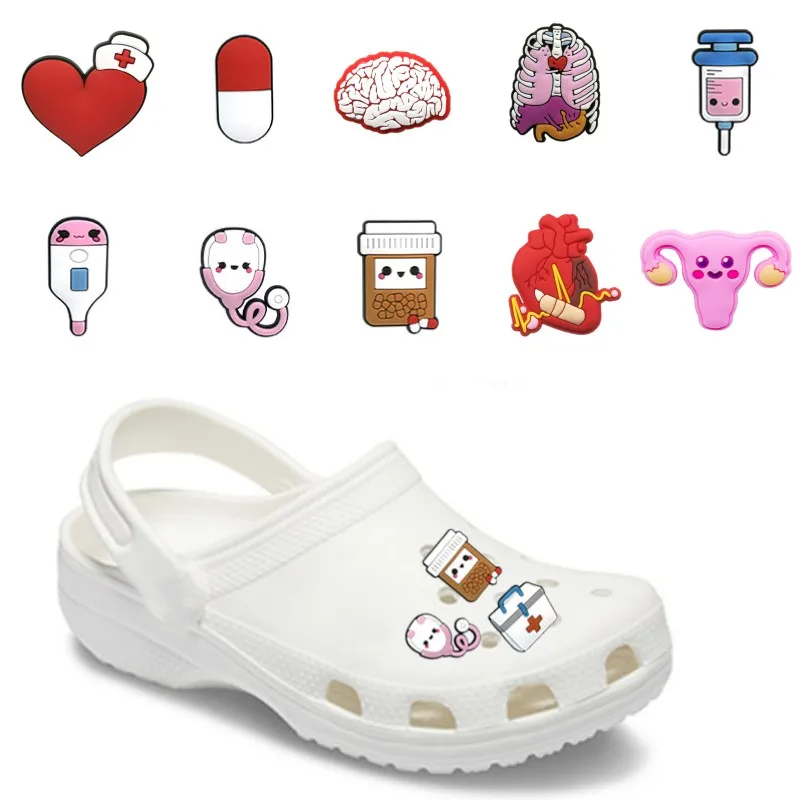 5-20 шт.лот, медицинская поставка, ПВХ подвески для обуви, стетоскоп, шприц, аксессуары, украшение для обуви, браслеты, украшения, подарок для детей