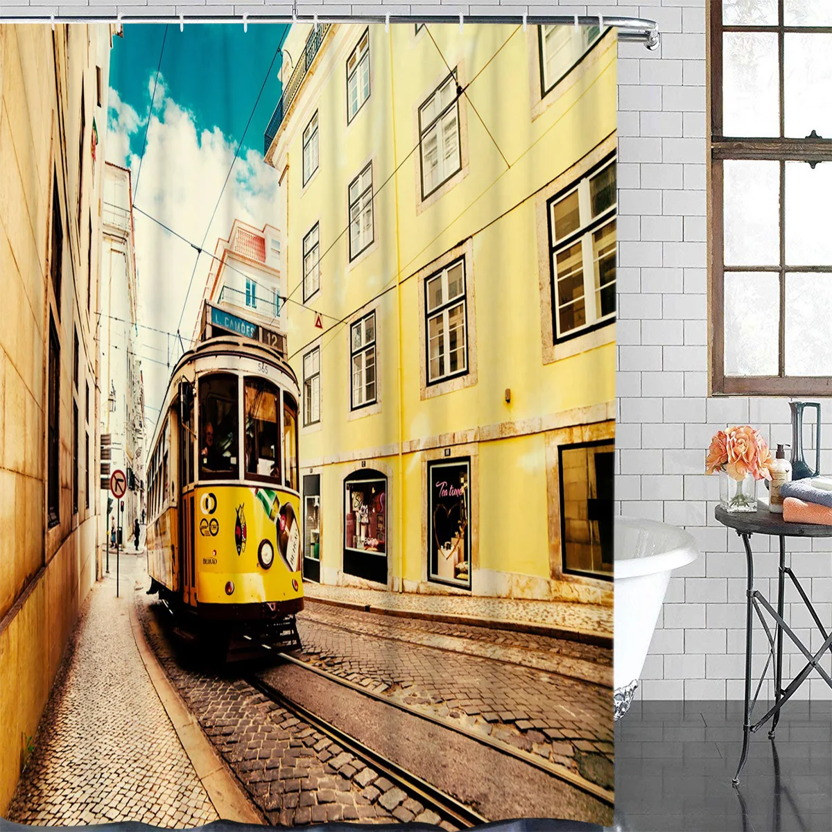Занавеска для ванной желтая дорожка, Водонепроницаемый моющийся экран для душа в ванную комнату, с крючками, аксессуары