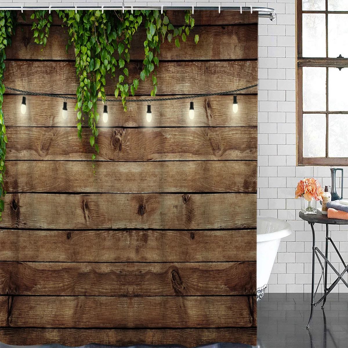 Занавески для душа для ванной комнаты с приманкой на деревянной ферме