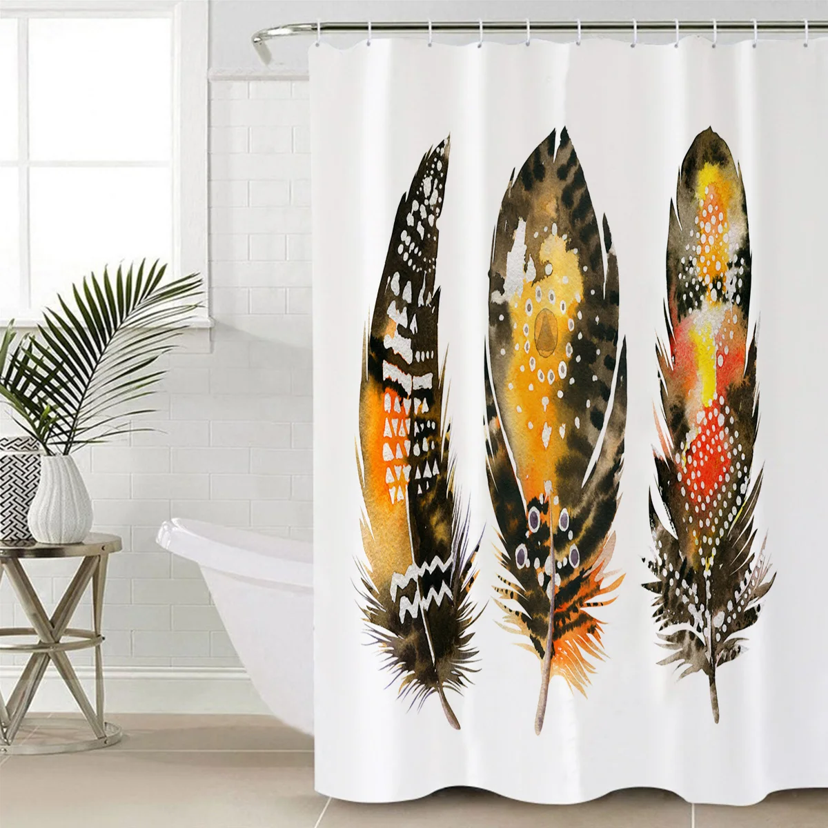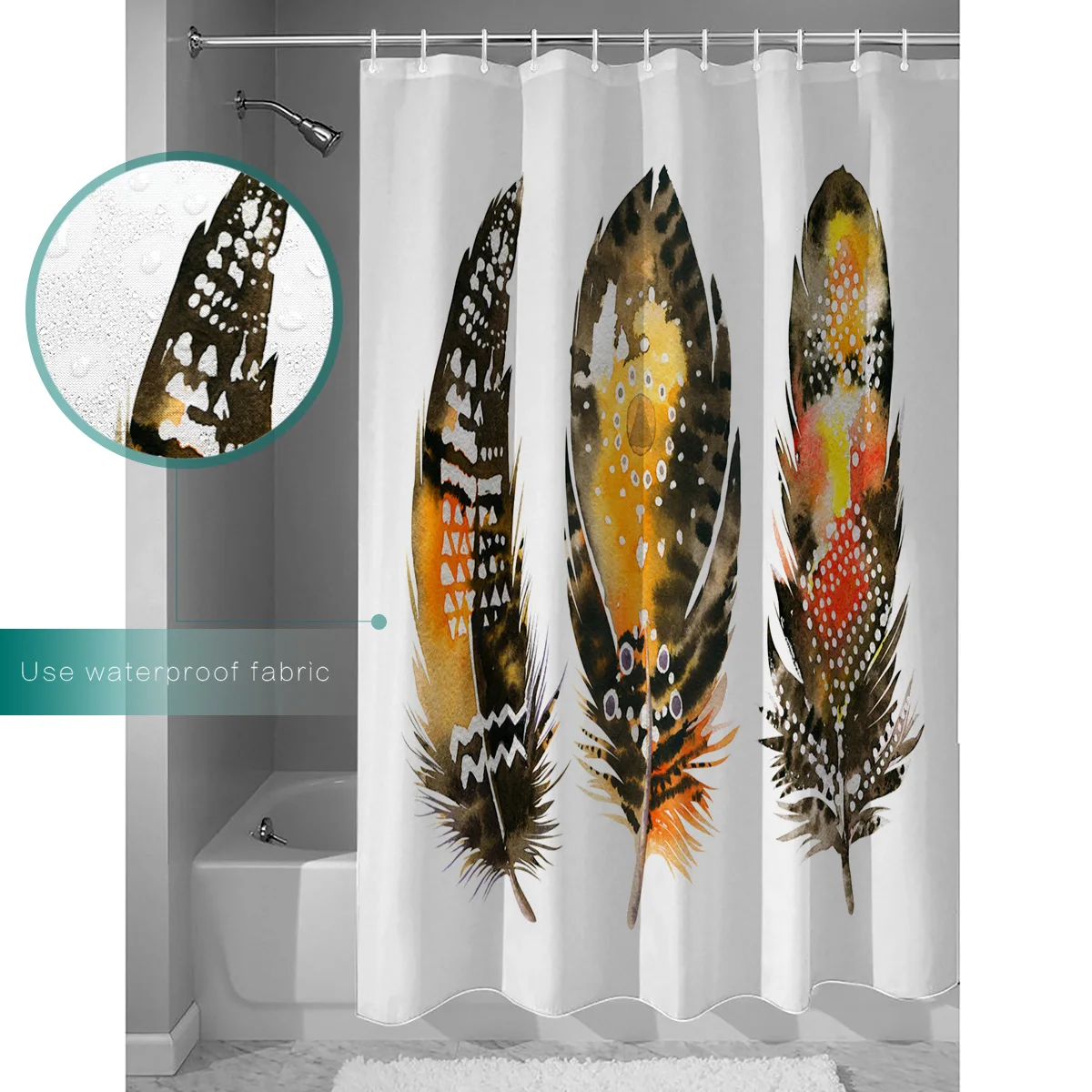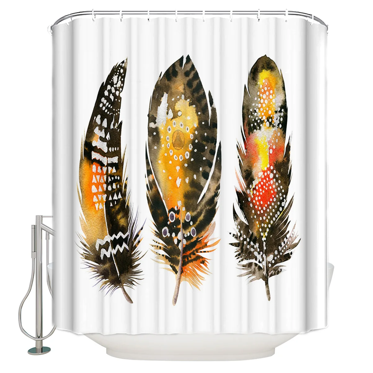 Штора для ванной черная с желтыми перьями, водонепроницаемая моющаяся занавеска для душа в стиле ретро, с крючками, аксессуары