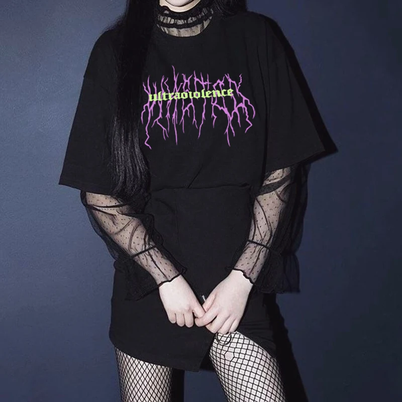 Футболки в стиле панк, готика, свободная уличная одежда, Harajuku, с буквенным принтом, летняя мода, женские повседневные винтажные черные футболки с коротким рукавом