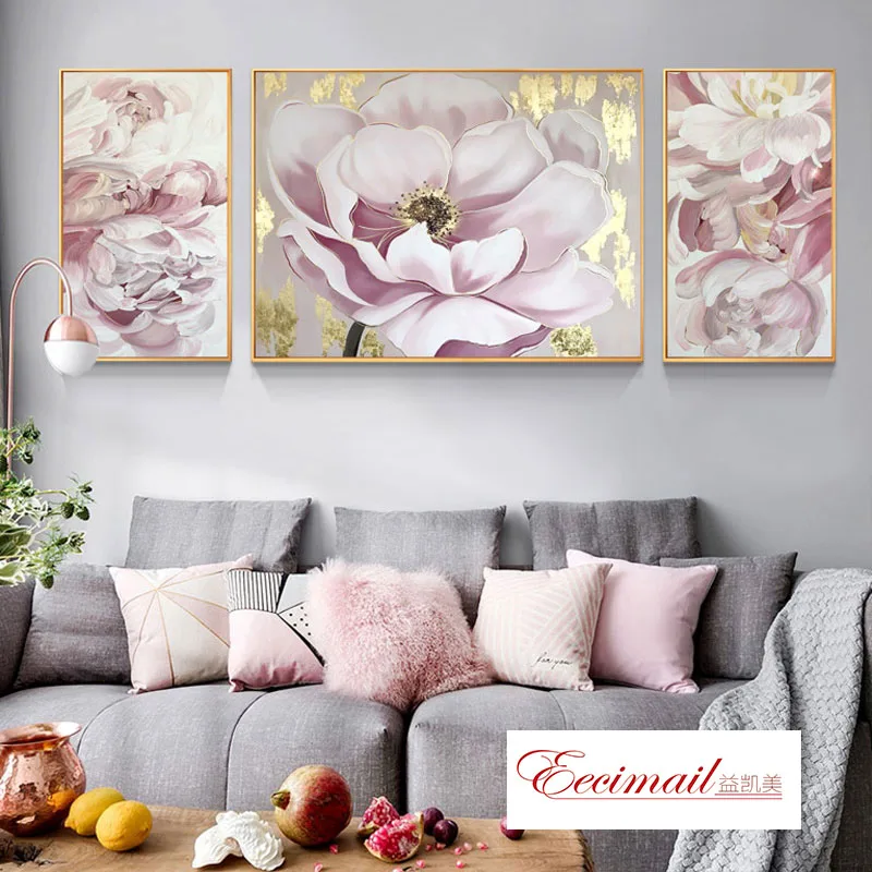 EECAMAIL 5D алмазная живопись сделай сам, полностью Алмазная вышивка, современный цветок пиона, Триптих, спальня, гостиная, картина без рамки