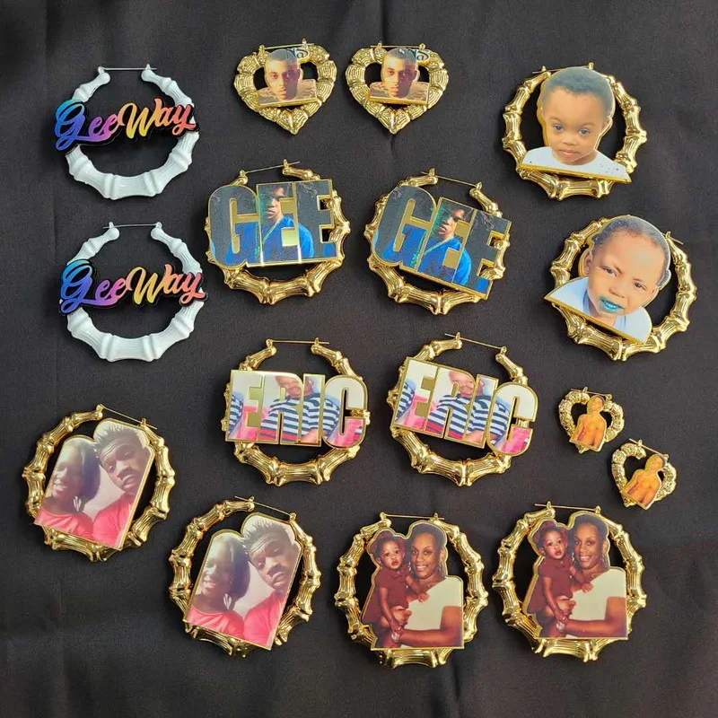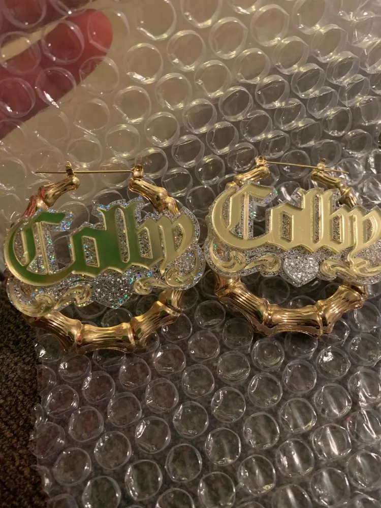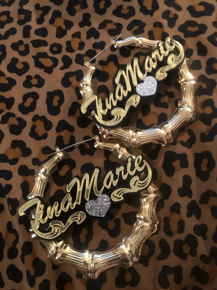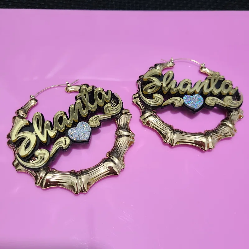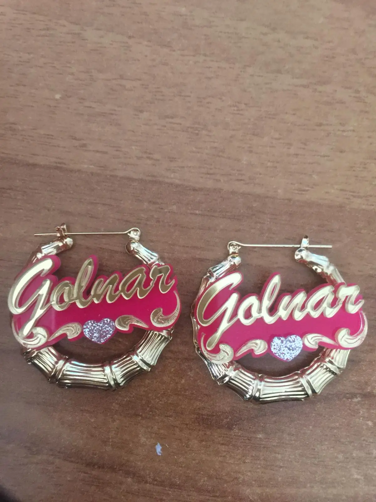 Серьги для пирсинга женские, акриловые, с именем на заказ, модные, бамбук серьги-кольца