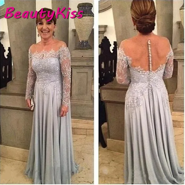 Платья для матери невесты размера плюс ТРАПЕЦИЕВИДНОЕ шифоновое платье с длинными рукавами и аппликацией из бисера для матери и жениха одежда для гостей на свадьбу