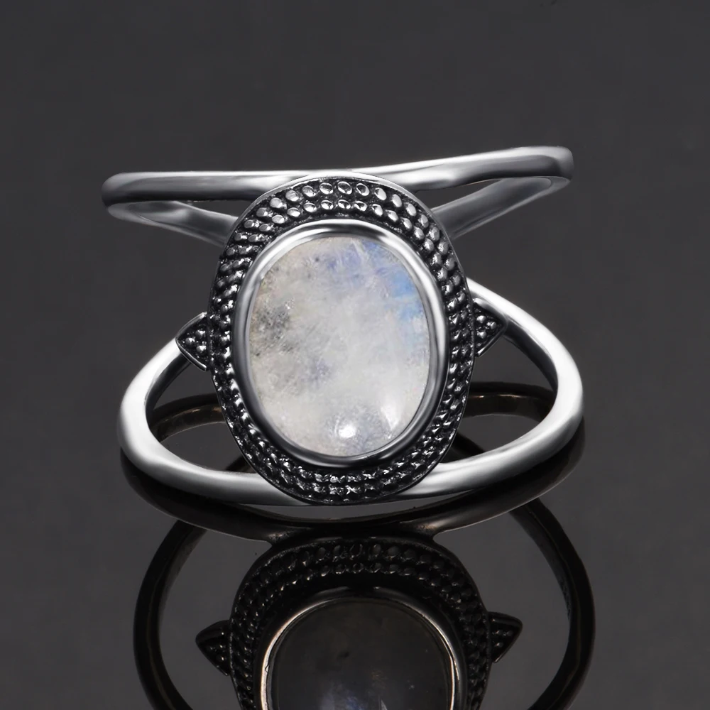 Кольца унисекс, натуральный Радужный Лунный Камень, 925, драгоценности из серебра и камней, размер 6-10