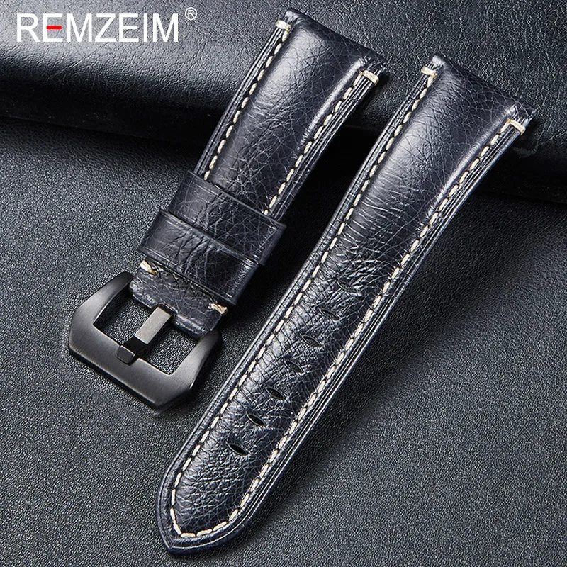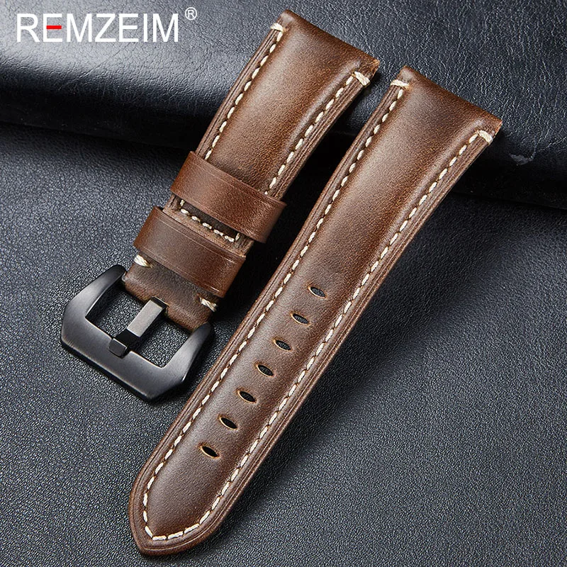 Ремешок из натуральной кожи для мужчин и женщин, браслет из воловьей кожи с масляной и вощеной воловьей кожи, синего, зеленого, красного, коричневого цветов, со стальной пряжкой, 20 22 24 26 мм
