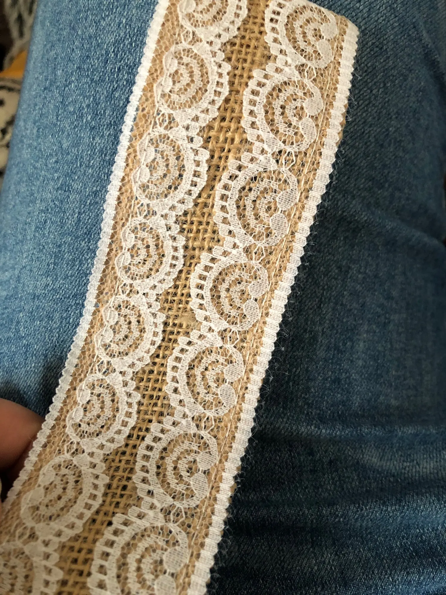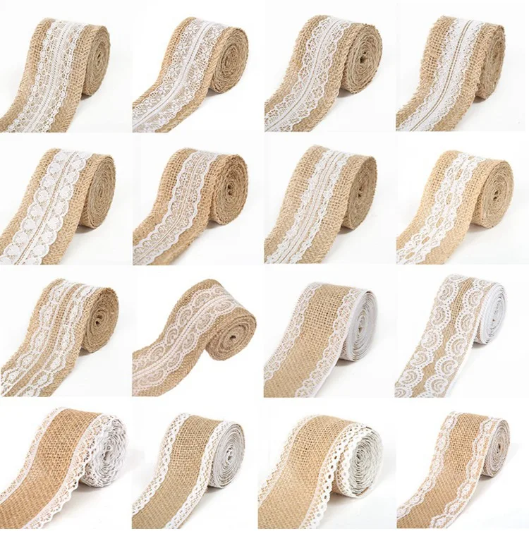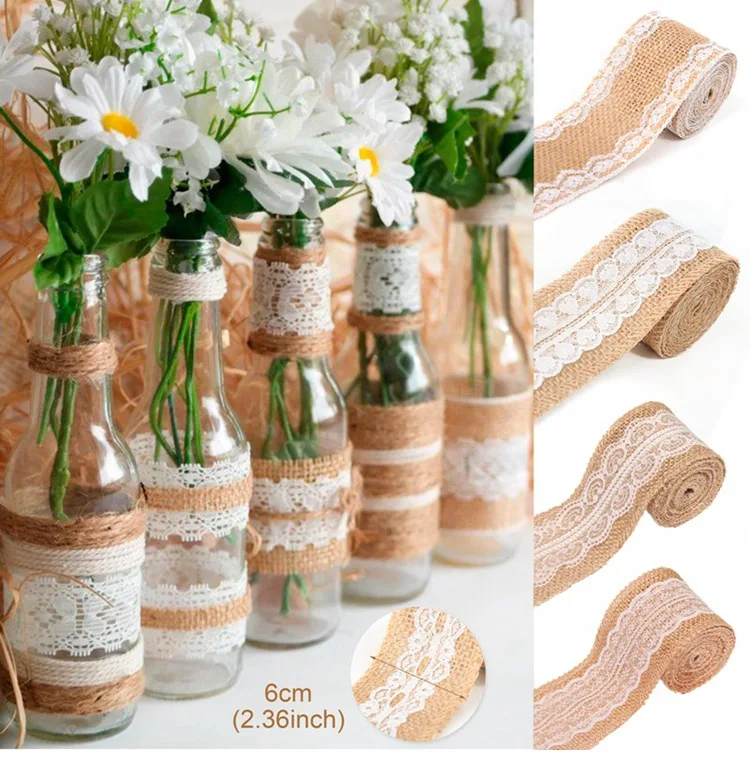 Кружевная лента из натуральной джутовой мешковины, 2 м, 5 см, с белой кружевной отделкой по краю, Деревенское свадебное украшение, ленты для поделок