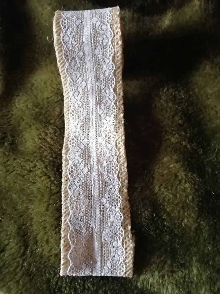 Лента из мишковины с кружевом очень понравилась. Качество хорошее. Брака нет. В магазине есть большой выбор. Продавец высылает быстро. Ширина 5 см, а длина 2 м. Доставка до МО около трех недель. Рекомендую продавца и магазин.