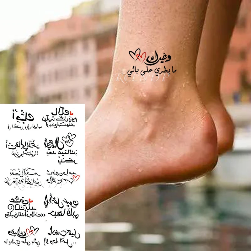 Водостойкая временная татуировка-наклейка Арабская буква сердце любовь сексуальный узор личность искусственное тату флеш-тату для женщин и мужчин