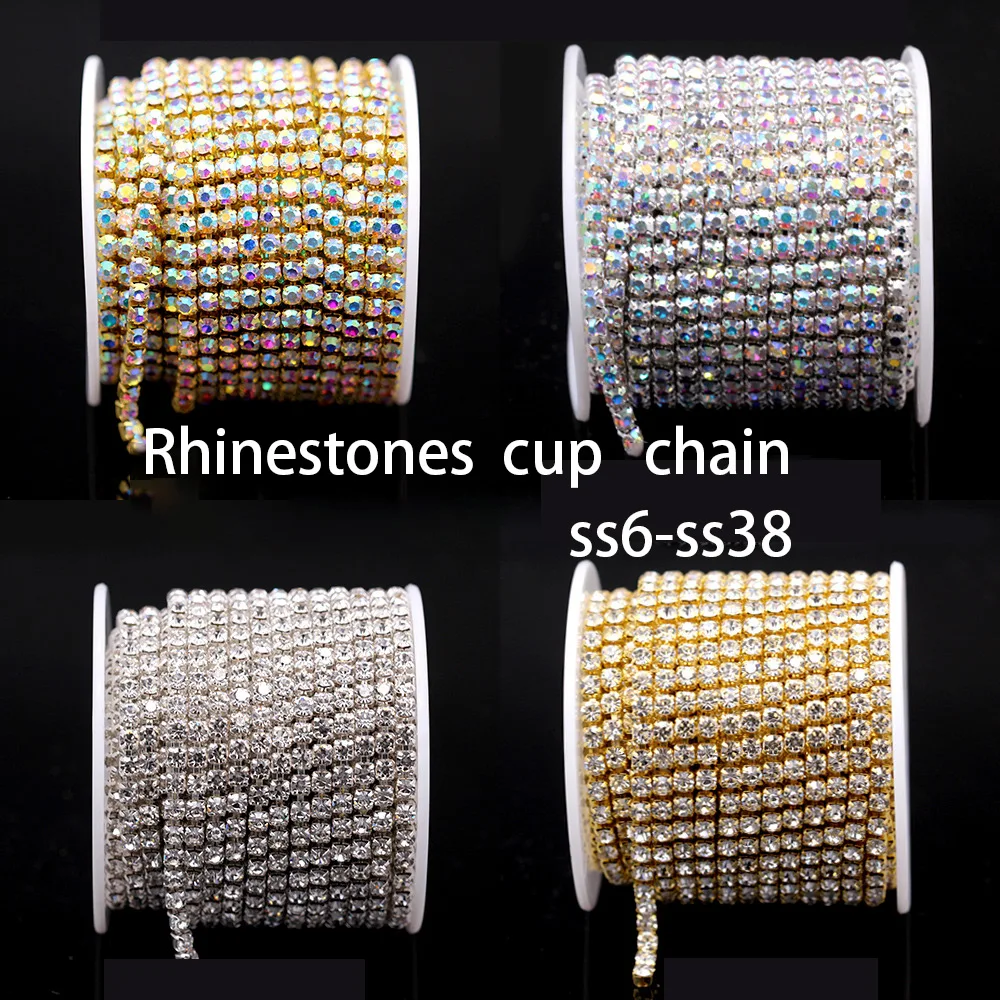 10 ярдов/рулон SS6-SS18 блестящие стразы AB Crystal цепи Пришивные клей для одежды DIY аксессуары для одежды отделкой Кубок цепи