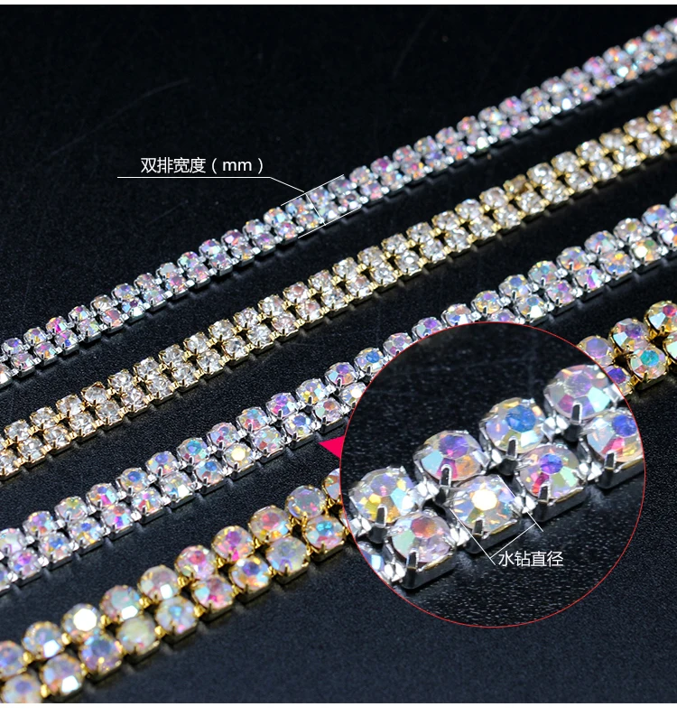 2 ряда 10 ярдов/рулон Стразы AB/прозрачная кристальная цепочка золото/серебро коготь близко основание чашки цепь Одежда Швейные аксессуары diy