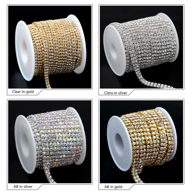 SS6-SS16 4 ряда 1 ярдов/рулон Стразы AB/прозрачная кристальная цепочка Золотой/Серебряный Коготь Тесная цепь Швейные аксессуары diy для красоты