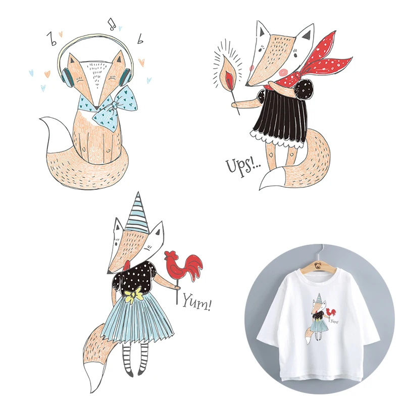 Виниловые Симпатичные нашивки с лисами, нашивки с помощью утюга для одежды, наклейки для одежды, термонаклейки с животными