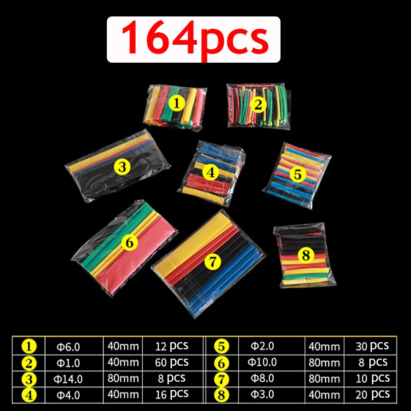 Характеристики:Количество: 1 упаковка (530 шт/280 шт/164 шт)Материал: ПолиолефинКоэффициент усадки: 2:1 (будет максимально сокращаться до 1/2 его поставляемого диаметра)Минимальная температура усадки: >84CТемпература полной усадки: >120CРабочая температура: от-55C до + 125CПрочность на растяжение: 10,4 МПаДиэлектрическая прочность: 15 кВ/ммСпецификация производства: ISO9001Воспламеняемость: огнестойкостьУтверждения: Одобрено ULФормат поставки (круглый или плоский): продукт поставляется в плоском видеСпособ резки: ножницы или острый нож530 шт. в комплекте:(Количество + диаметр + длина)80 шт. x 1,5x45 мм80 шт. x 2,0x45 мм80 шт. x 2,0x45 мм60 шт. x 3,0x45 мм50 шт. x 4,0x45 мм50 шт. x 4,0x45 мм30 шт. x 5,0x45 мм20 шт. x 6,0x45 мм20 штук x 8,0x45 мм20 штук x 10,0x45 мм20 штук x 10,0x45 мм20 штук x 10,0x45 мм530 шт. в комплекте:60 шт. x 1,0x40 мм30 шт. x 2,0x40 мм16 шт. x 3,0x40 мм16 шт. x 4,0x40 мм16 шт. x 6,0x40 мм10 шт. x 8,0x80 мм8 шт. x 10,0x80 мм8 шт. x 14,0x80 мм