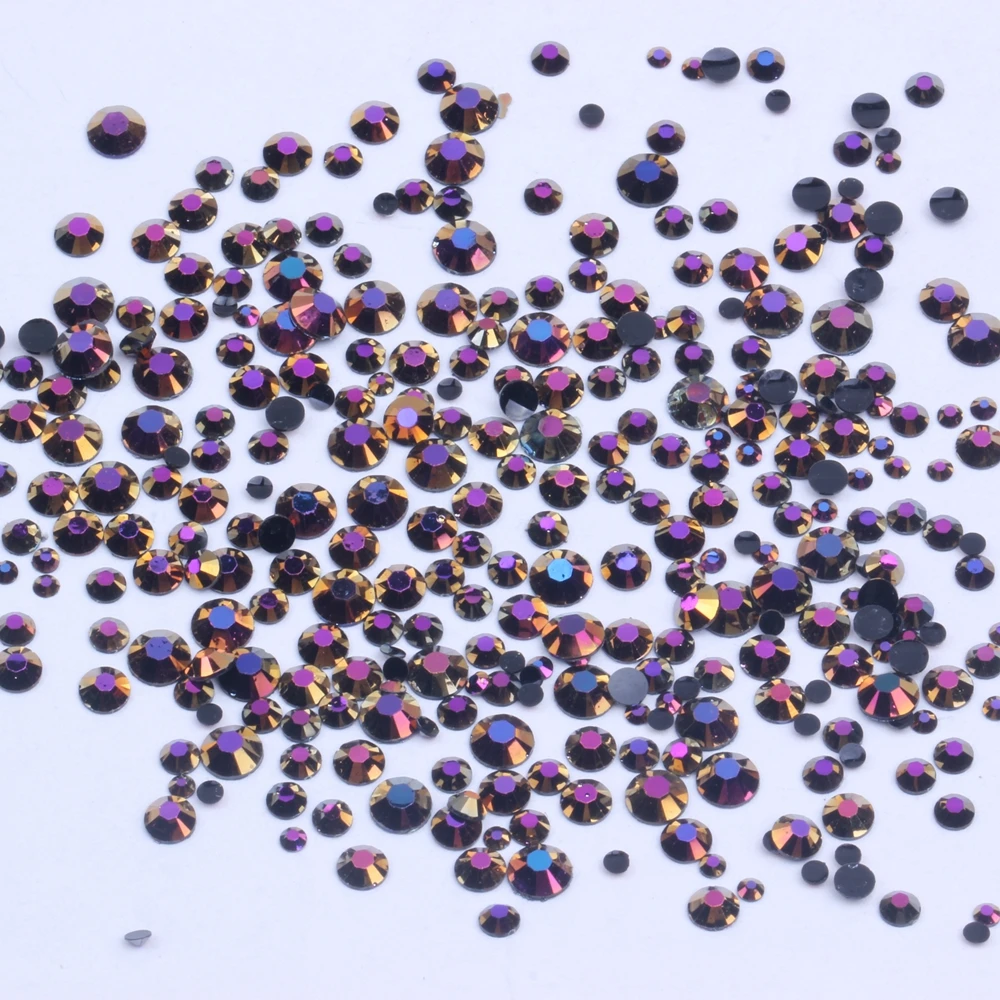 Золотисто-черные стразы из смолы AB 2 мм 2,5 мм 3 мм 4 мм 5 мм 6 мм без горячей фиксацииКруглый клей на бусинах DIY ногтей искусство украшения мобильного телефона