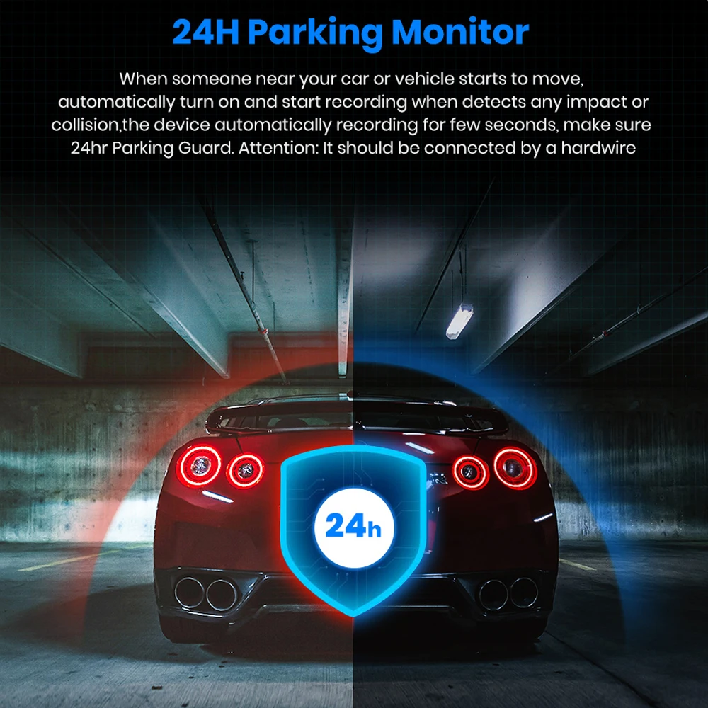Когда кто-то рядом с вашим автомобилем или автомобилем начинает двигаться, автоматически включается и начинает запись при обнаружении любого удара или столкновения, устройство автоматически записывает в течение нескольких секунд, убедитесь, что 24hr парковочная защита.Посылки inlcude ODB buck line.