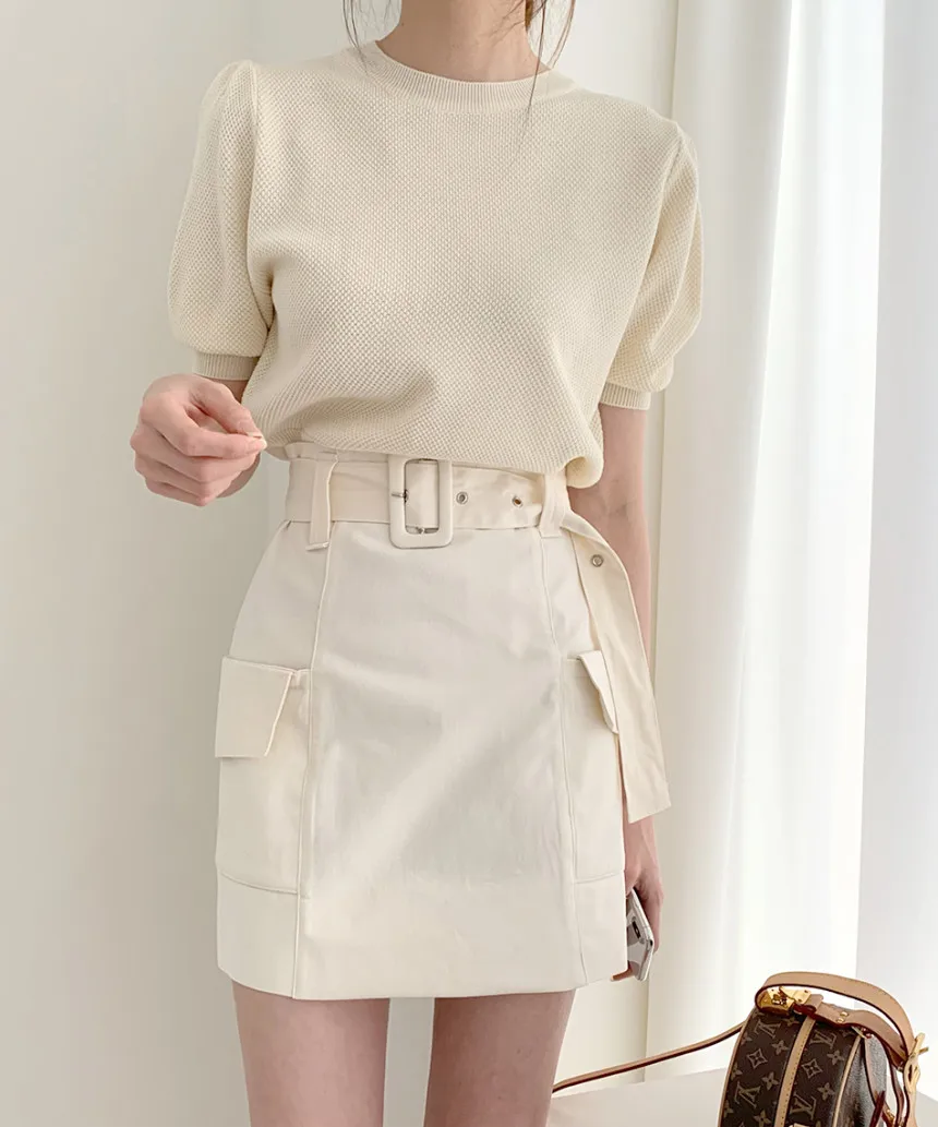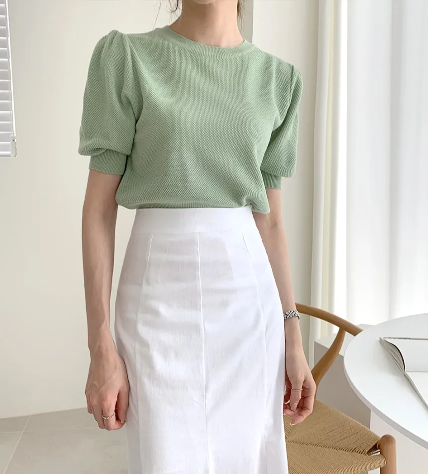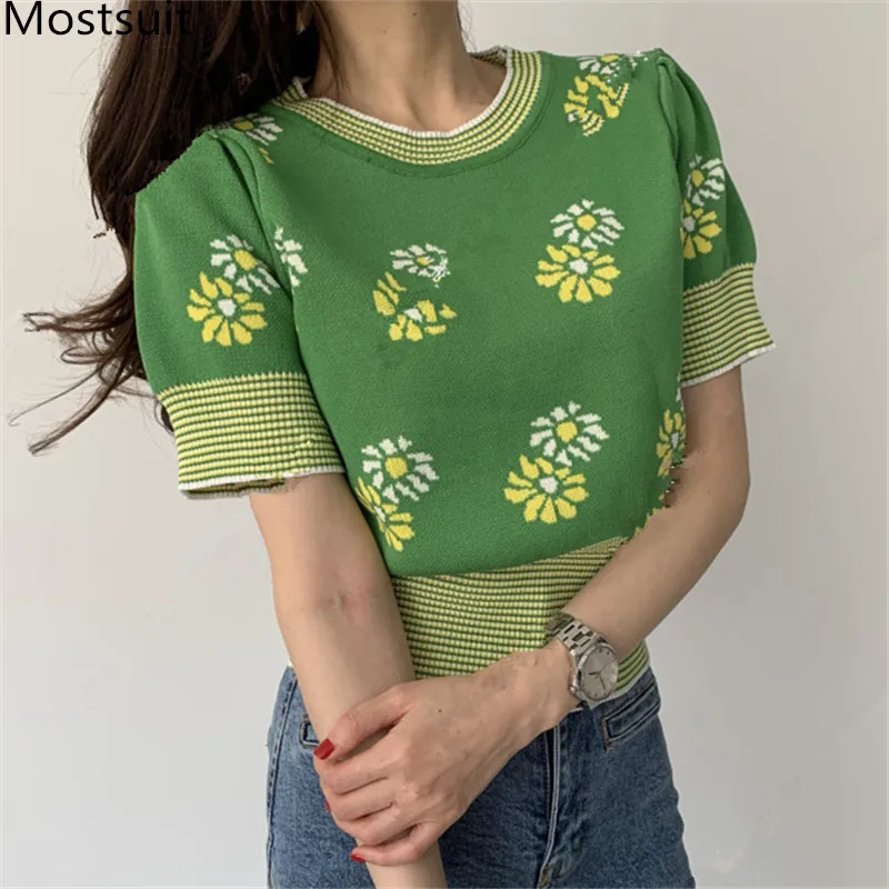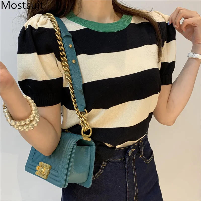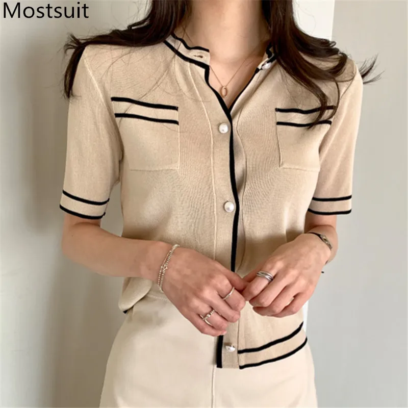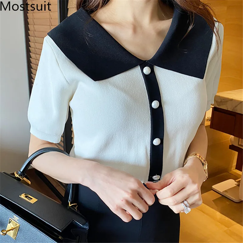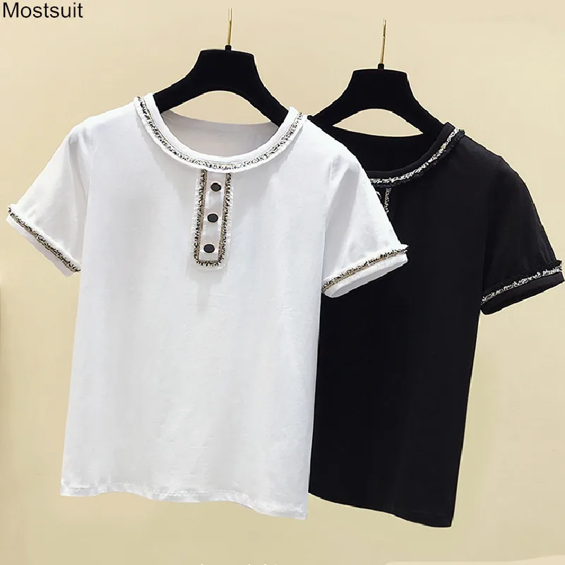 Корейские трикотажные однотонные женские туники, топы, летние пуловеры с коротким рукавом и круглым вырезом, элегантные модные женские футболки, 2020