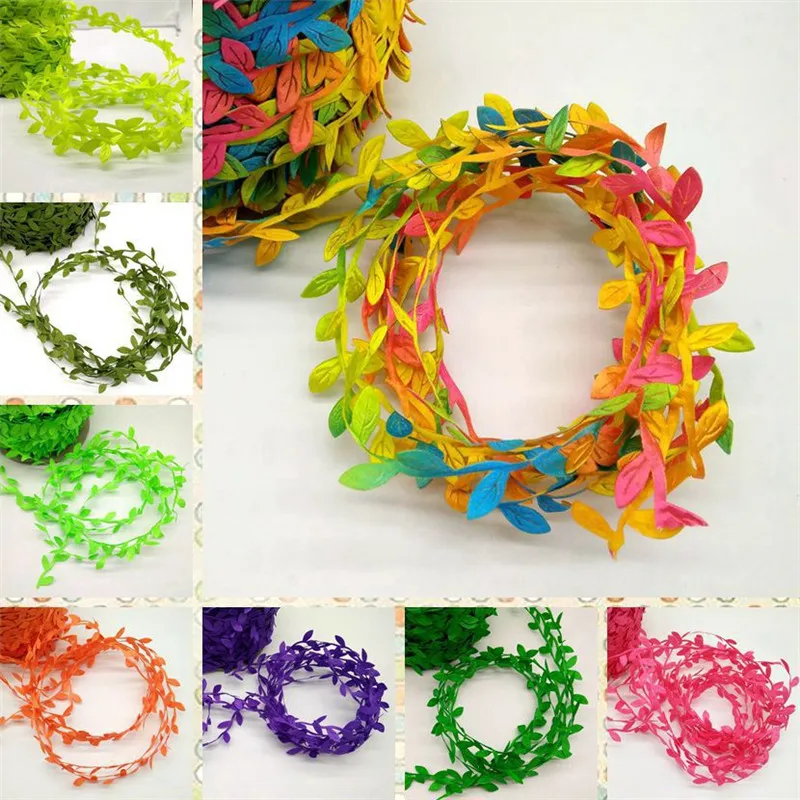 5 метров шелковые листья ручной работы, искусственные зеленые листья для свадебного украшения, венок, подарок, скрапбукинг, искусственные цветы