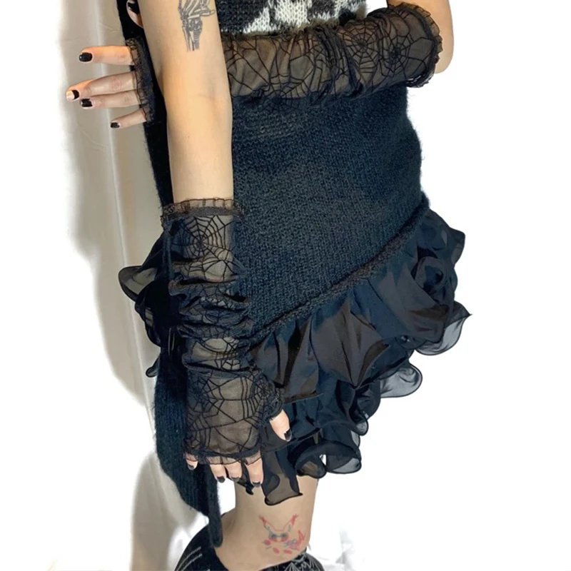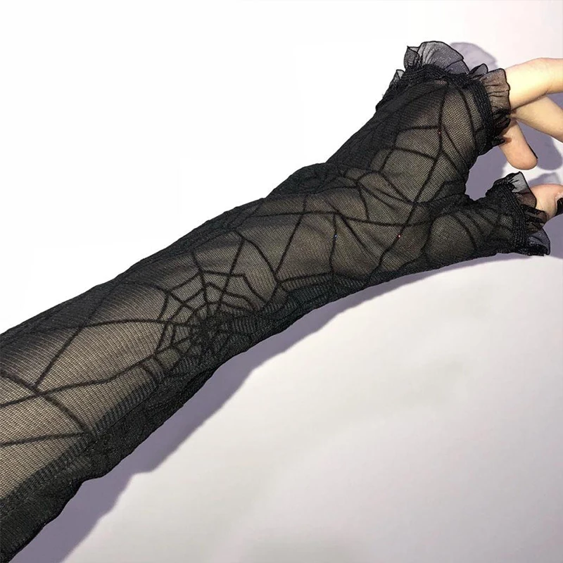 Черные готические женские сетчатые прозрачные перчатки в стиле панк без пальцев, кружевные варежки Cobweb 2022, крутые, для Хэллоуина, для рок-вечерние НКИ