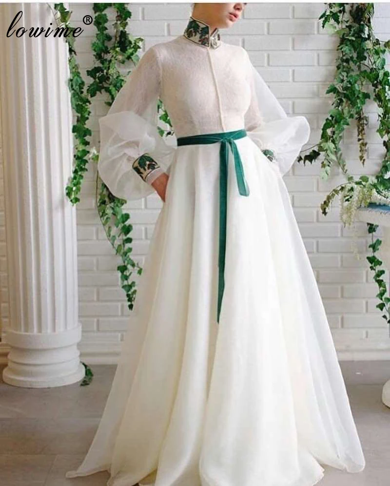 Элегантные белые вечерние платья, вечерние платья с высоким воротом, женские вечерние платья, вечерняя одежда с длинными пышными рукавами, платье для выпускного вечера, Vestido
