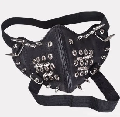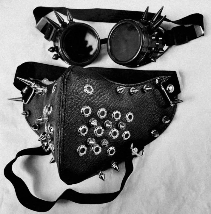 Черная маска и очки из искусственной кожи с длинными заклепками, модные мотоциклетные очки в стиле панк, для косплея, защита от пыли, заклепки, Спортивная Маска и очки