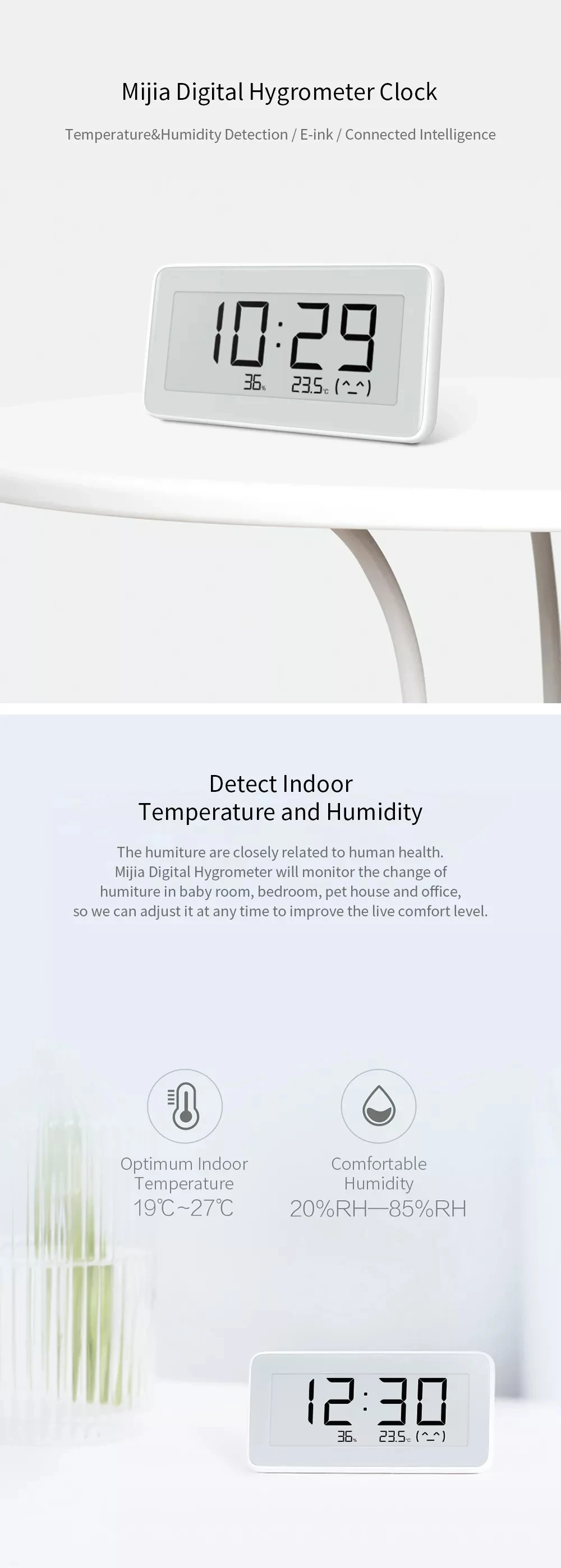 Цифровые часы Xiaomi BT4.0, беспроводные Смарт-часы с гигрометром и...
