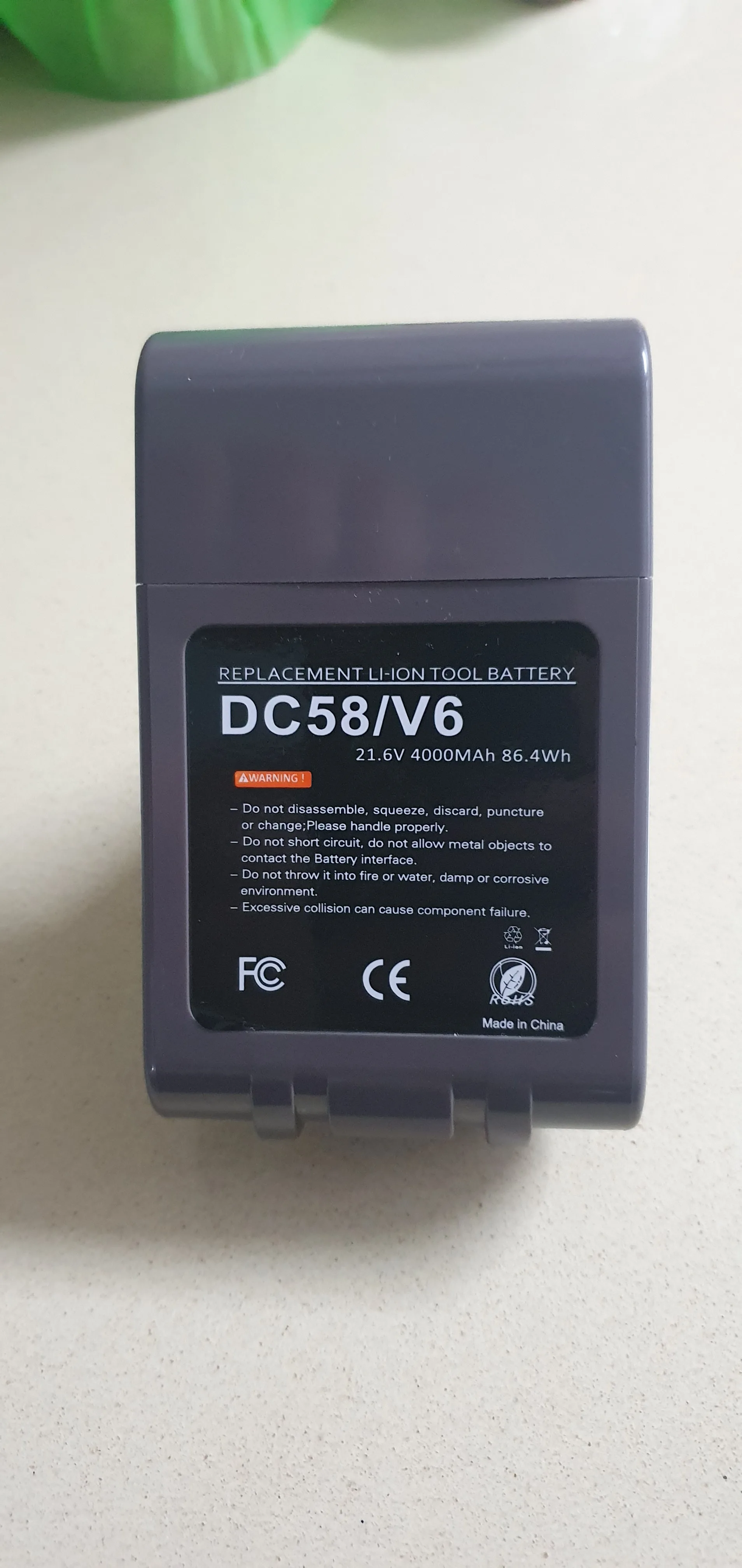 Это работает должным образом в течение почти 3 недель. Время работы кажется хорошим или лучше, чем новая оригинальная замена. Кажется, Сделано с хорошим качеством, правильно помещается в мой Dyson V6 пылесос. Он также прибыл с разумным временем доставки.