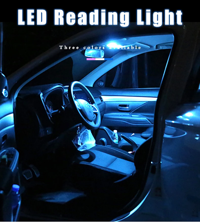 Состав: Передний светильник для чтения (2 шт.) Купольный светильник (1 шт.) Светильник для багажника/грузового пространства (1 шт.) Характеристика: 1. Светодиодный светильник: безотказный дизайн CAN-bus (без предупреждающего сообщения на приборной панели, без мерцания/проблем с освещением), неполярность, подключи и работай. 3. Светодиодный светильник на танкетке чувствителен к полярности, поэтому в чехол лампа не включится, пожалуйста, переверните его на 180 градусов. (потому что светодиодный светильник имеет полярность, как батарея)