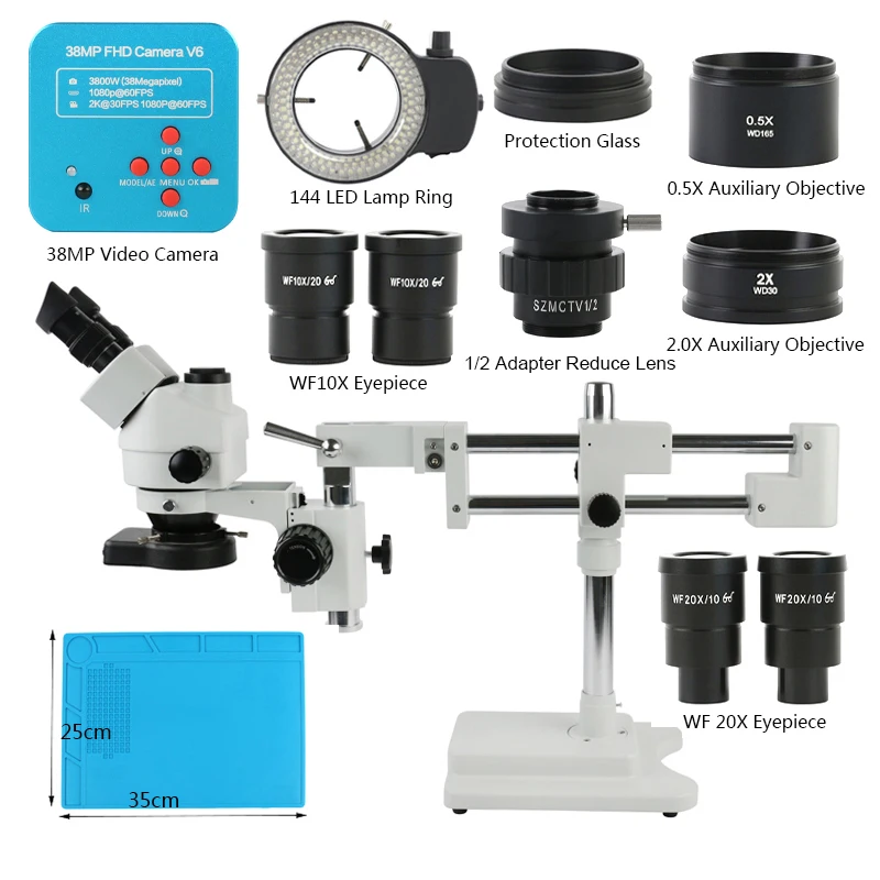 Особенности:7X до 45X непрерывное увеличение мощности45 Градусов Наклонных перноглазных симульно-фокусная головка с супер WIDEFIELD High-Eyepoint окуляраТринокулярный порт для добавления фото или видео возможности30 мм супер Widefield WF10X окуляры с 20 мм поле зренияВысокое разрешение с большой плоскостью и контрастностьюРезкие стерео изображения по всему полюКристально чистые оригинальные изображения истинного цветаБольшое рабочее расстояниеТочное выравнивание обеспечивает просмотр без усталостиПолностью оптические стеклянные элементыТочные линзы для наземного стеклаВсе металлические механические компонентыРегулируемая интерпиллярная дистанцияИзготовлено по стандарту контроля качества ISO 9001Характеристики:Головка: 45 градусов наклонная 360 градусов Поворотный Тринокулярный simul фокусным расстояниемОкуляр: 30 мм super widefield high-eyepoint WF10X/20Цель: 0,7-4.5XДиапазон зума: 6,5: 1Тринокулярный порт: 23 мм фото портРасстояние между отверстиями: 2-1/8 "до 3"(54-76 мм)Поле зрения: 1-1/4 " (33 мм)Рабочее расстояние: 7X-45X (100 мм) использование объектива 0.5x 3.5X-45X(165 мм) использование 2. Объектив 0x 7X-90X(40 мм)Размер крепления головки: 3 " (76 мм) ДиаметрРазмер крепления: 1-7/8 " (48 мм Диаметр женской резьбы)Новое обновление до HDMI VGA видео микроскоп камерыЦвет камеры черного цветаВ изделии используется cmos-сенсор SONY iMX307, который решает проблему тусклого отображения старой камеры из-за недостаточного светильник.Улучшает качество изображения и цифровое шумоподавление, увеличивает цветопередачу и выход 1080P, поддерживает больше языков, английский, китайский, японский, испанский, русский, очень подходит для пайки PCB SMD телефона.Модуль: FHD3860Сенсор Panasonic:38 мегапикселей, 38 миллионов пикселей CMOSОптический формат: 1/2.3 дюймаРазмер пикселя: 1.335μm x1.335μmИнтерфейс: HDMI (тип A).USB (тип B). Tf-картаРазрешение изображения: 38 мегапикселейРазрешение видеозаписи: 2K @ 30 кадров в секунду 1080p @ 60 кадров в секундуРазрешение HDMI: 1920*1080p 60FPSМожет выводить с USB одновременноМасштаб HDMI: Поддержка 4:3,16:9,16:10 экранаUSB2.0 (без привода):1920*1080 @ 30 кадров в секунду 1280*720 @ 30 кадров в секунду 640*480 @ 30 кадров в секундуМожет выводить с HDMI одновременноTF карта: макс. 64 ГБAWB:WB коррекция цвета/Авто/руководствоR. G.b независимая Настройка значенийЭкспозиция: Автоматическое/ручное. Значение AE может установитьПоперечные линии: 8 линий. Можно задать цвет, ширину и положениеЛинии отметок шкалы: 2 линии.Пунктирные линии: 2 линии. Можно задать цвет, ширину и положениеУсиление контрастного цвета резкости: ПоддержкаМоно отрицательный: ПоддержкаЗеркало: горизонтальное вертикальное зеркалоЯзык: английский/упрощенный китайскийЦифровой зум: ПоддержкаИК-пульт: ПоддержкаНапряжение в: 12 В постоянного тока 55-21 мм РазмерМощность Потребляемая мощность: Макс 0,15 W 12V,0.12AИнтерфейс объектива: C/CSВес нетто: 180 гВес брутто: 400 гРазмер камеры: 74*74*35 ммРазмер упаковки: 160*100*80 ммВопросы решения:ЖК-дисплей без видео или мерцания1. Проверьте источник питания. Проверьте зеленый светодиодный светильник. Нажмите кнопку PowerKey.2. Проверьте крышку объектива. Увеличьте освещение.ЖК-дисплей имеет черную основу изображения1. Изменение разрешения ЖК-дисплея2. Изменение разрешения камерыЕсть грязное пятно1. Проверьте камеру и объектив, найдите пыль, затем очистите с помощью абсолютного этилового спирта или моющего средстваРасширьте объем операций, любую ориентацию и угол, отмеченные цели.В
