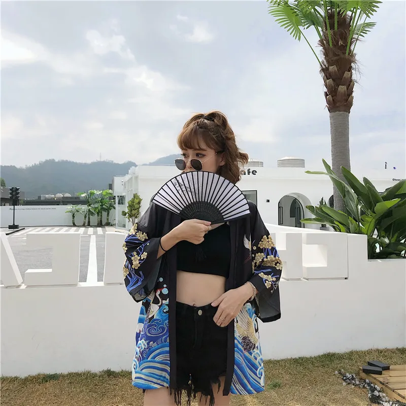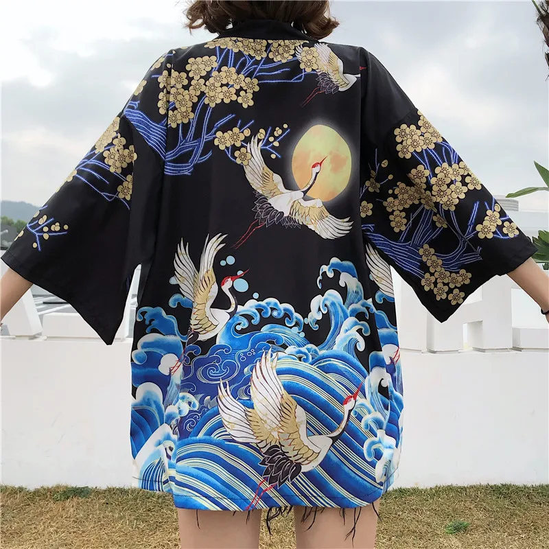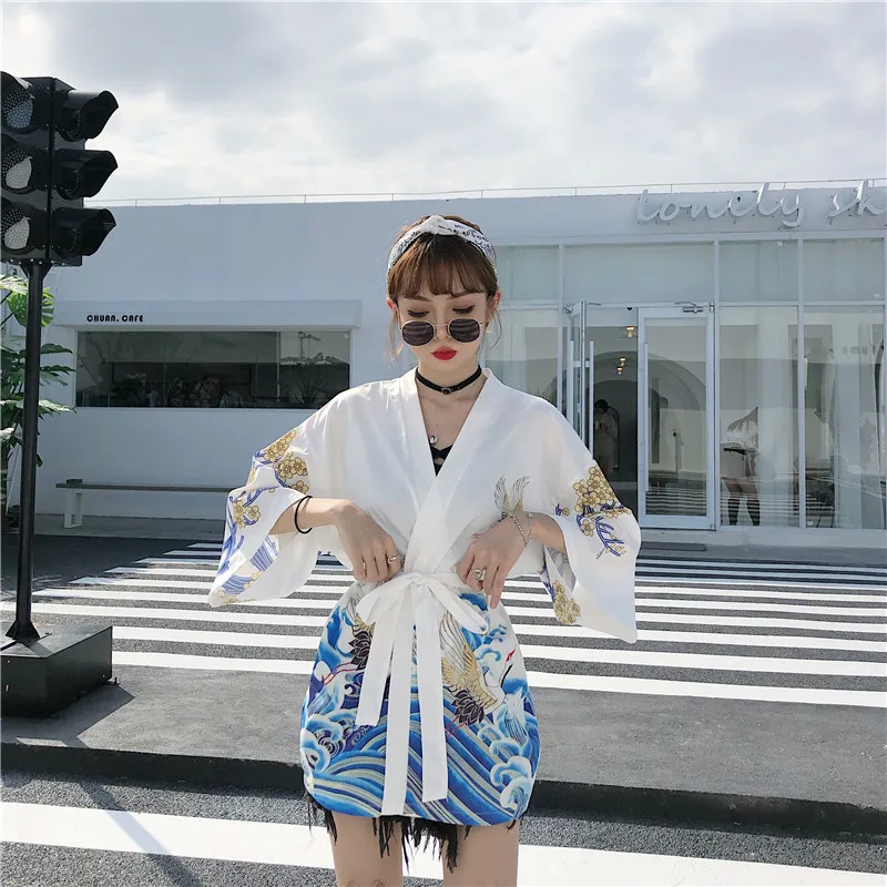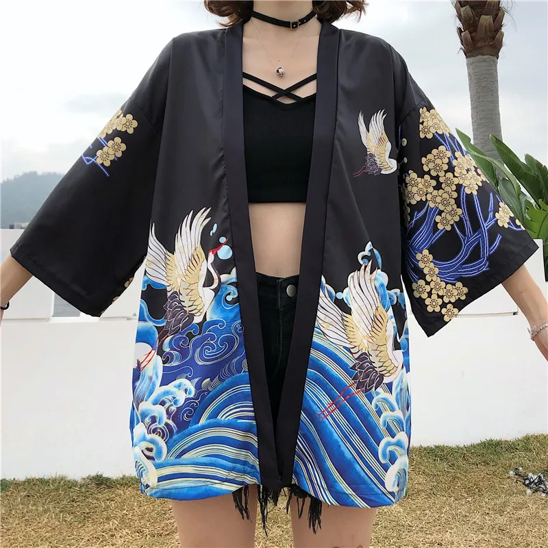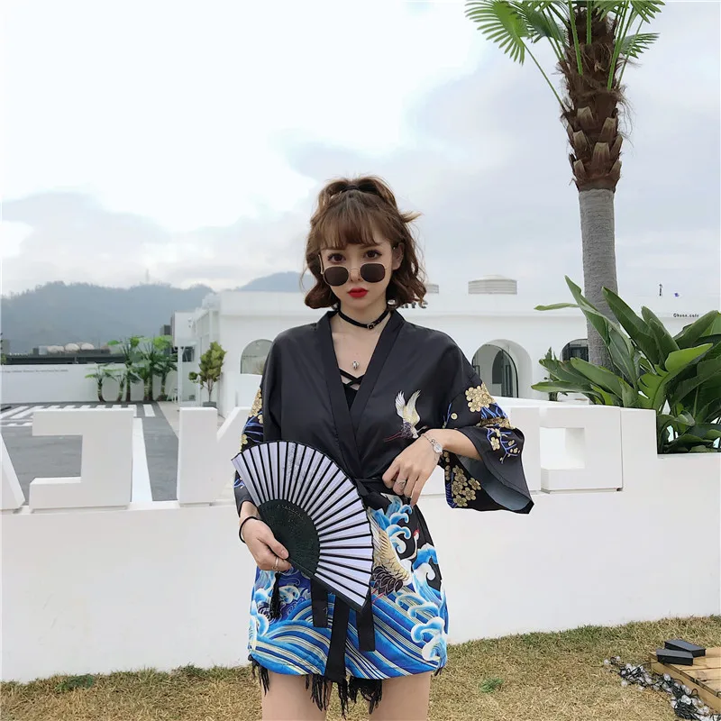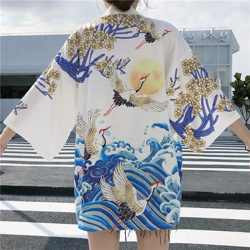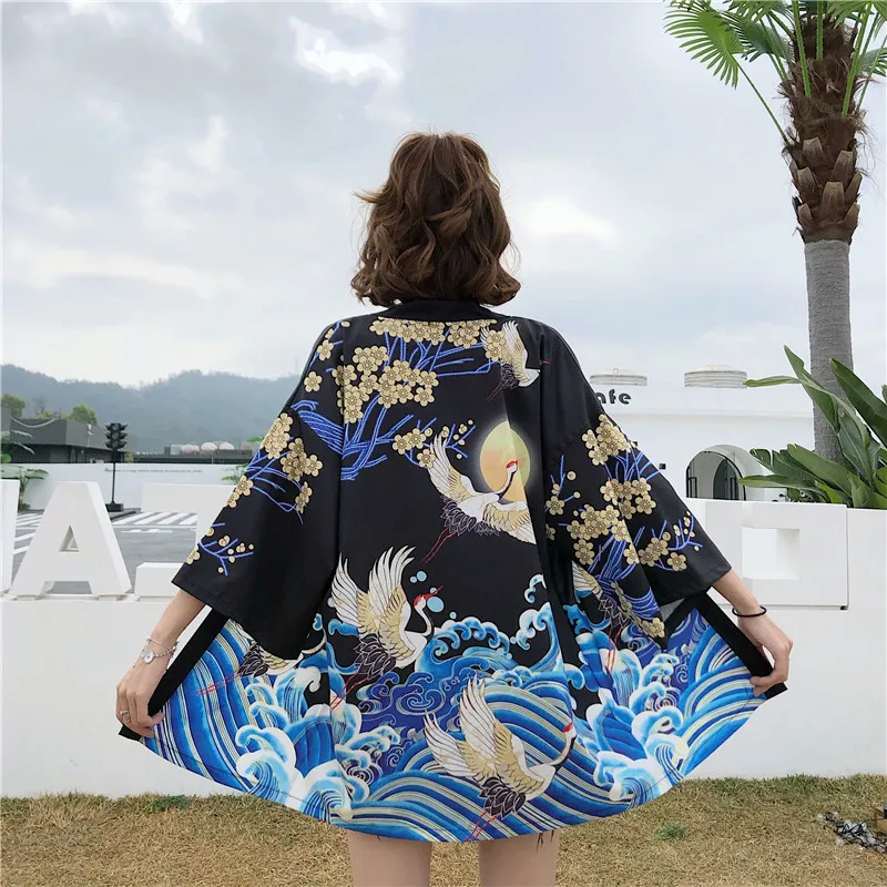 Кимоно Haori женский кардиган большого размера Surblouse традиционное японское кимоно кран Летняя Пляжная Солнцезащитная Harajuku одежда юката с поясом icon star icon star icon star icon star icon star