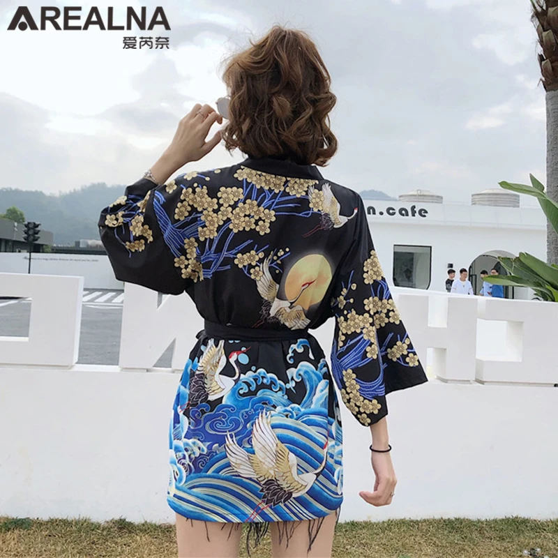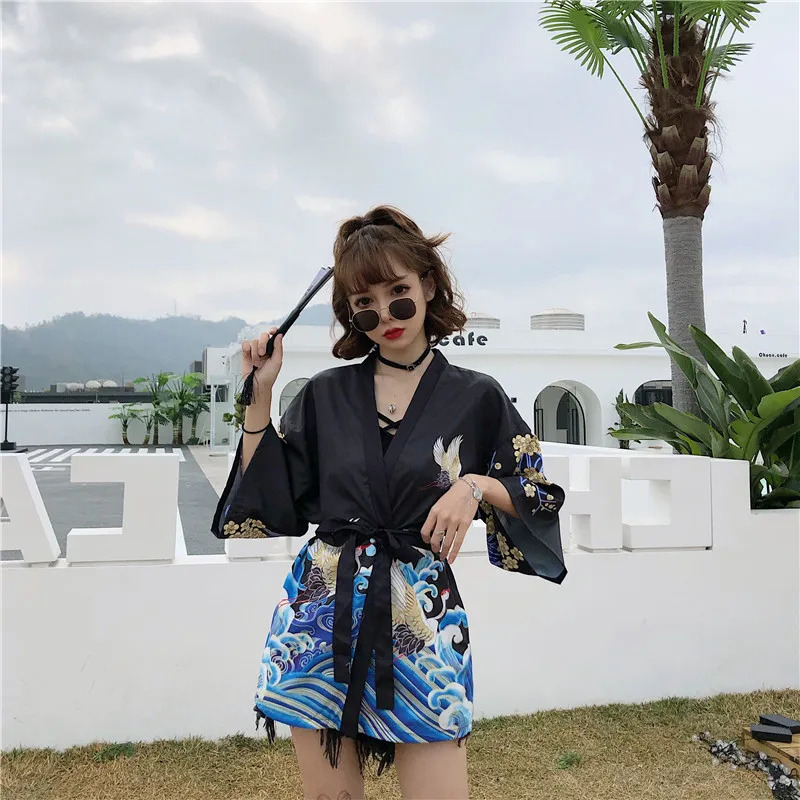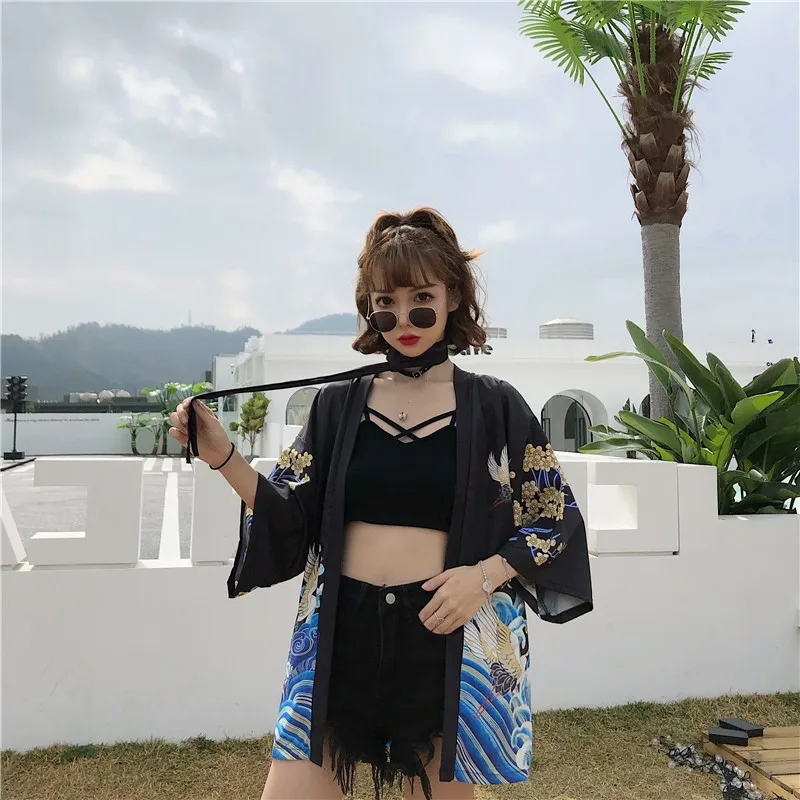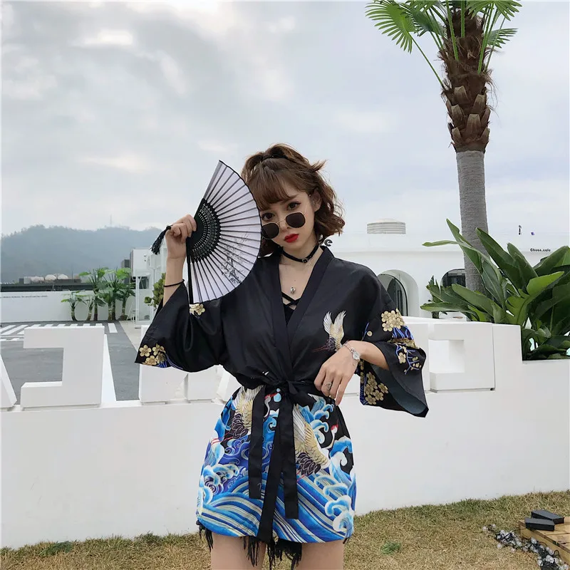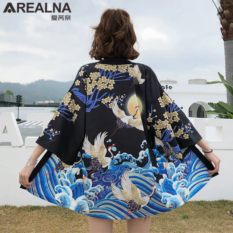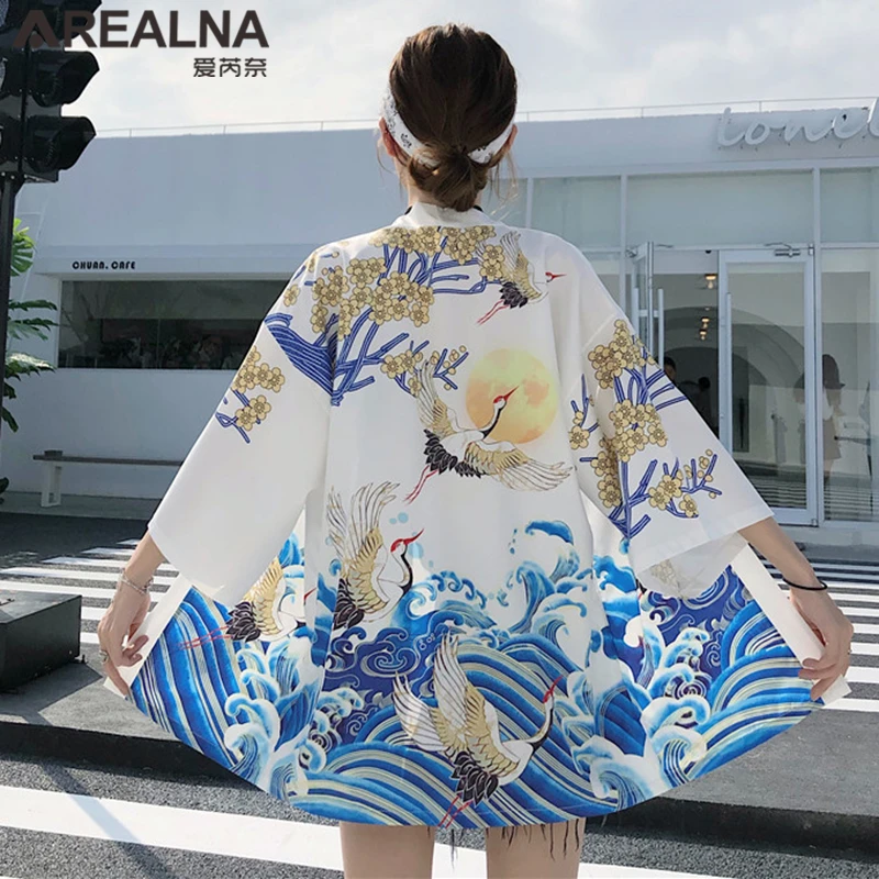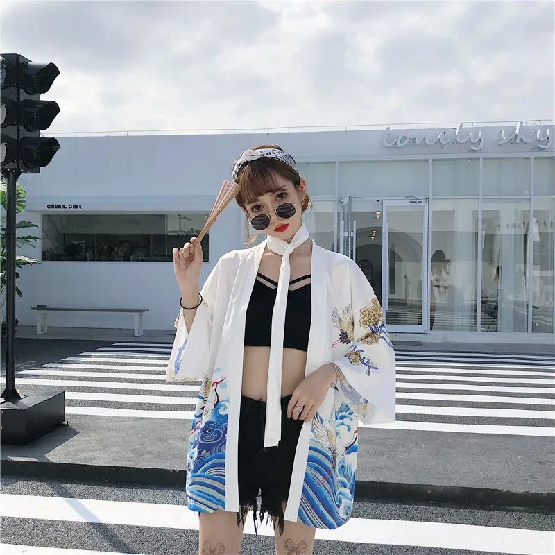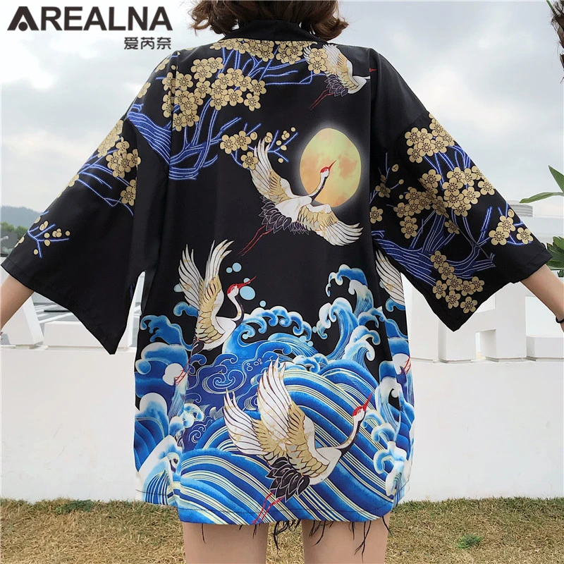 Кимоно Haori женский кардиган большого размера Surblouse традиционное японское кимоно кран Летняя Пляжная Солнцезащитная Harajuku одежда юката с поясом icon star icon star icon star icon star icon star