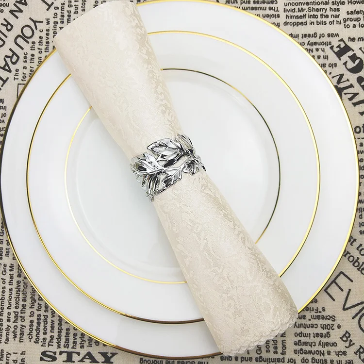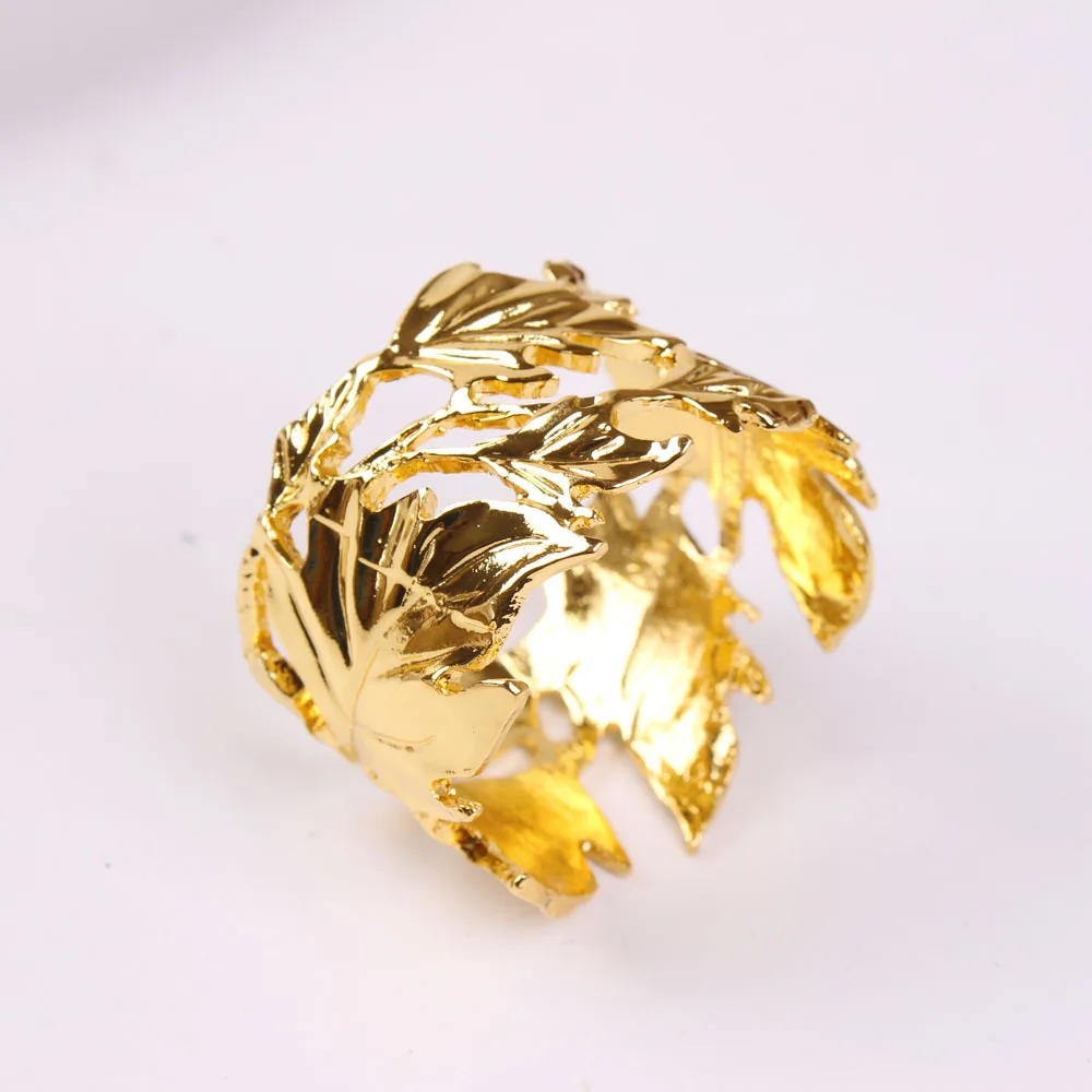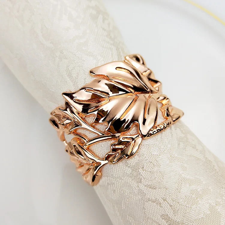 10 шт., кольцо для салфеток в виде листьев, золотое, серебряное, розовое золото, пуговица для салфетки, кольцо для салфеток в отеле