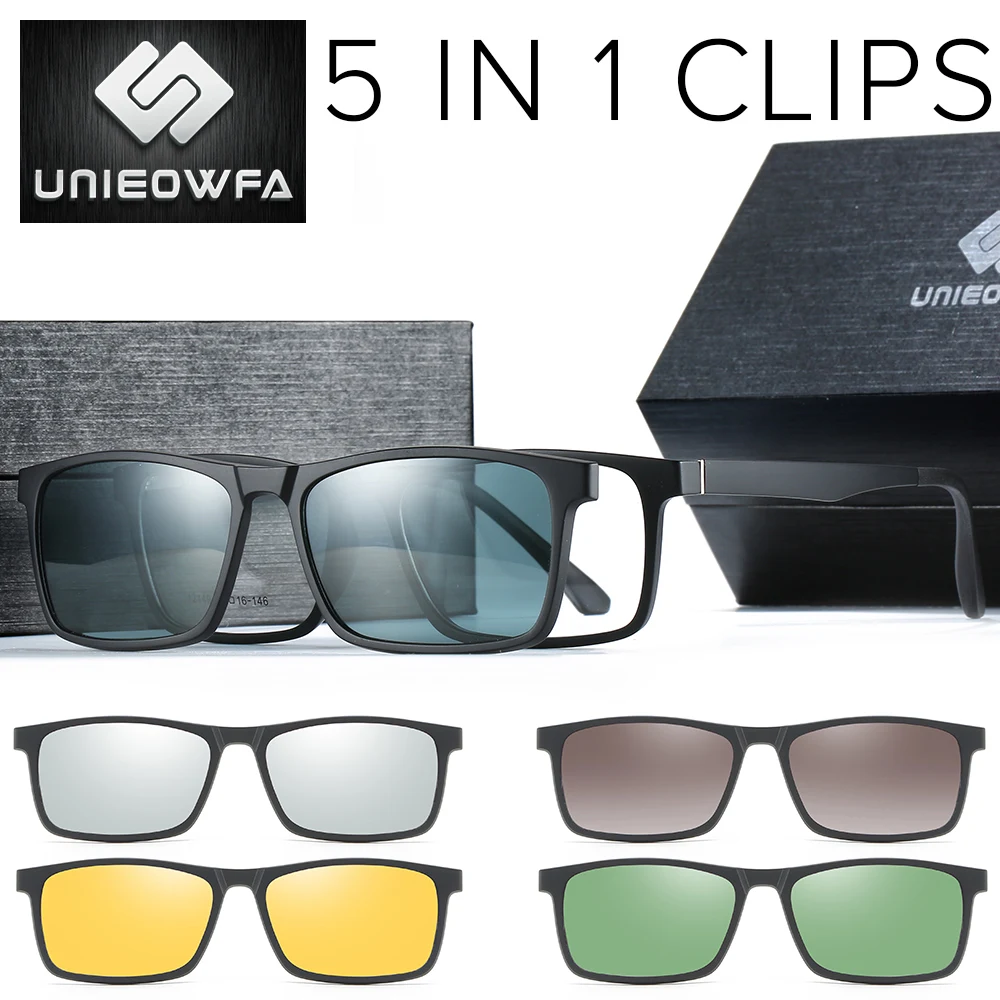 Солнцезащитные очки Мужские, женские, мужские, поляризационные, с клипсой из пластика TR90, для коррекции близорукости, с 5 магнитами