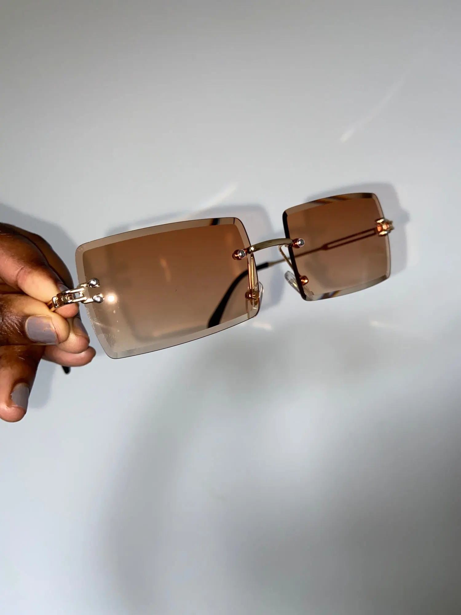 Солнцезащитные очки женские прямоугольные, квадратные, без оправы, uv400, зеленые и коричневые, лето 2020