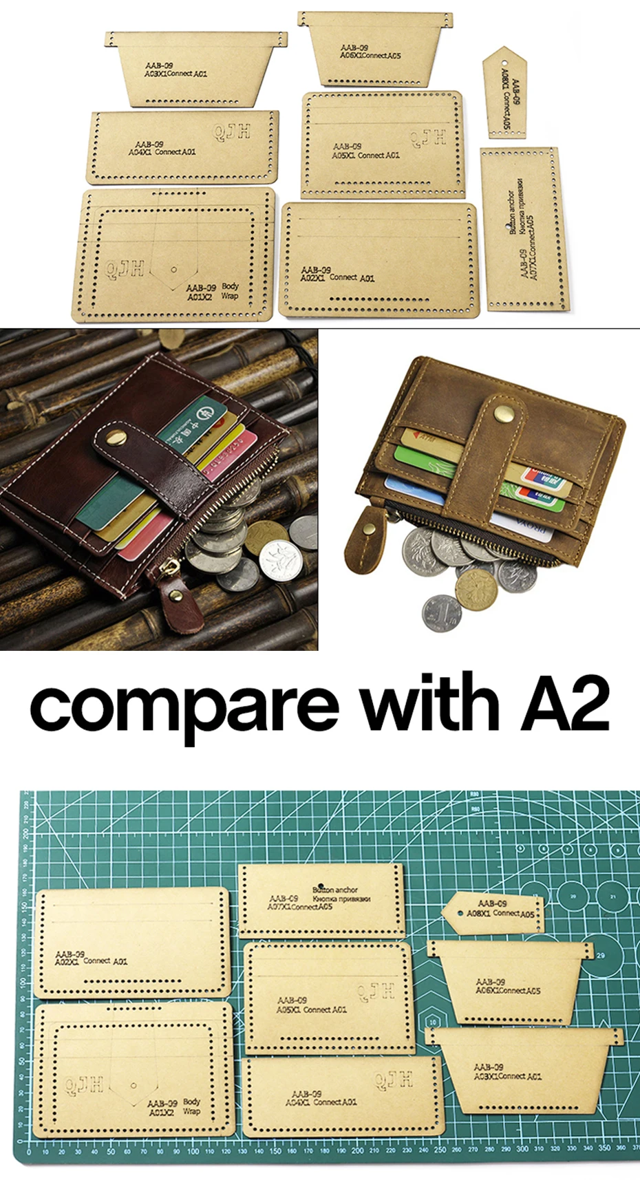 Шаблон из крафтовой бумаги сделай сам, модная удобная упаковка для карт, кошелька, кожевенного ремесла, шаблон сделай сам, трафарет для шитья, 1 набор