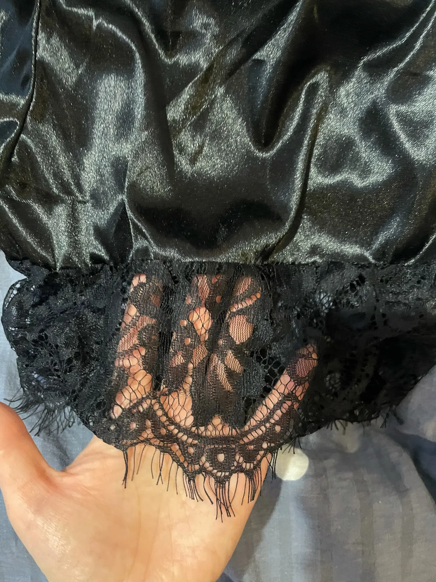 Пижама хорошо сшита, красивое кружево, но очень просвечивает, будьте готовы к этому. Пришла очень быстро