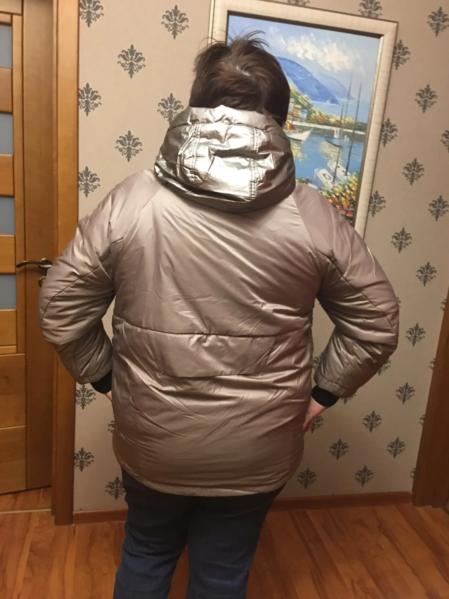 на мой 54-56 велика, из-за этого кажется, что я на пару размеров ещё больше, а брала большой размер из-за толщины рук (45см) капюшон пытается свалиться на нос, шея у меня короткая. А так курточка классная, конечно не на мороз, но до 0 думаю с кофточкой будет нормально. Буду делать возврат, хорошо что есть такая возможность, новую не закажу, не мой фасон, реглан мне никогда не подходил. Продавцу огромное спасибо.