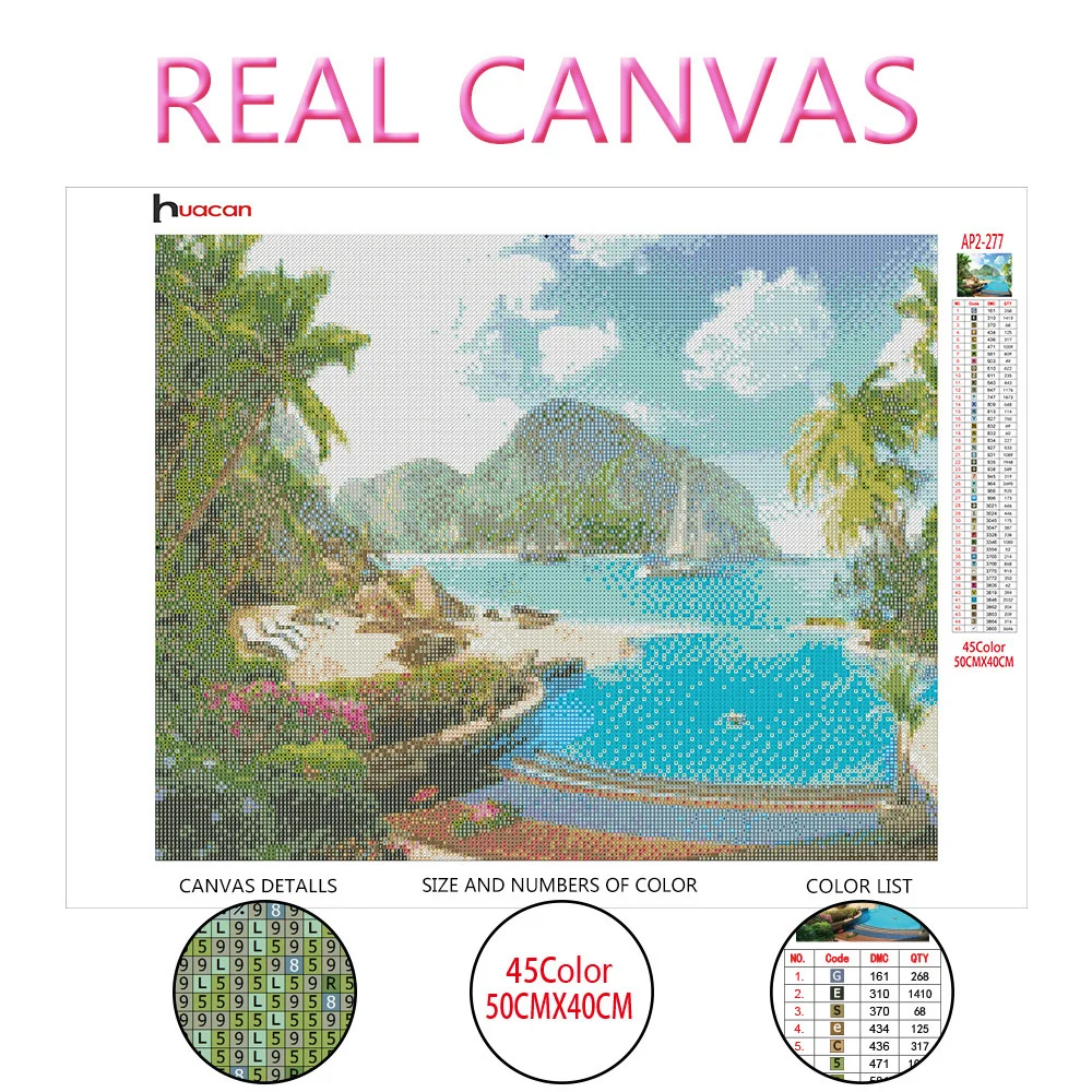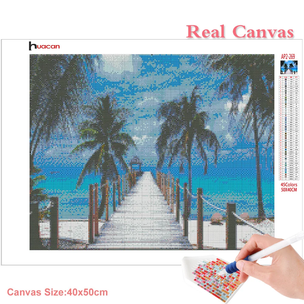 Huacan алмазная вышивка Кокосовая пальма пейзаж картины из страз мозаика море природа декор для дома