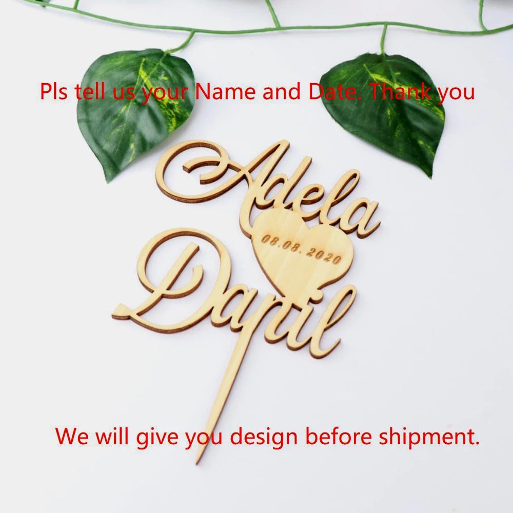 Персонализированный Деревянный Топпер для торта с именем пары, акри...