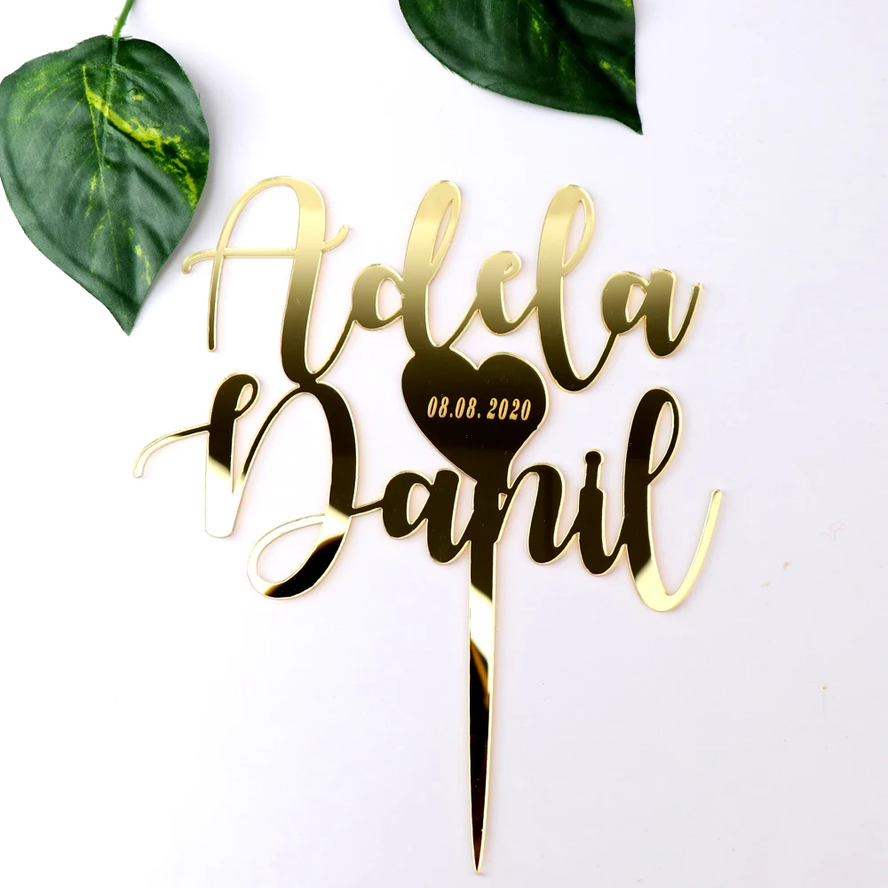 Personalized Acrylic Wedding Cake Topper, Custom Mr and Mrs Couple Names with Date Wedding Cake Topper Calligraphy Party Decor For Anniversary