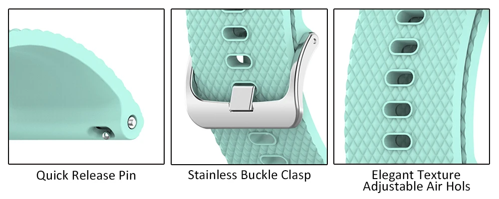 1. Ремешки с защитой от пота, дождя, брызг и воды, предназначены для тренировок высокой интенсивности. 2. Материал: мягкая силиконовая лента с металлическим застежкой из нержавеющей стали 3. Комфортное ношение, безопасно для кожи 4. Легко установить с помощью быстроразъемного штифта 5. Подходит для запястья 5,5-8,7 дюймов, подходит для женщин и мужчин 99%