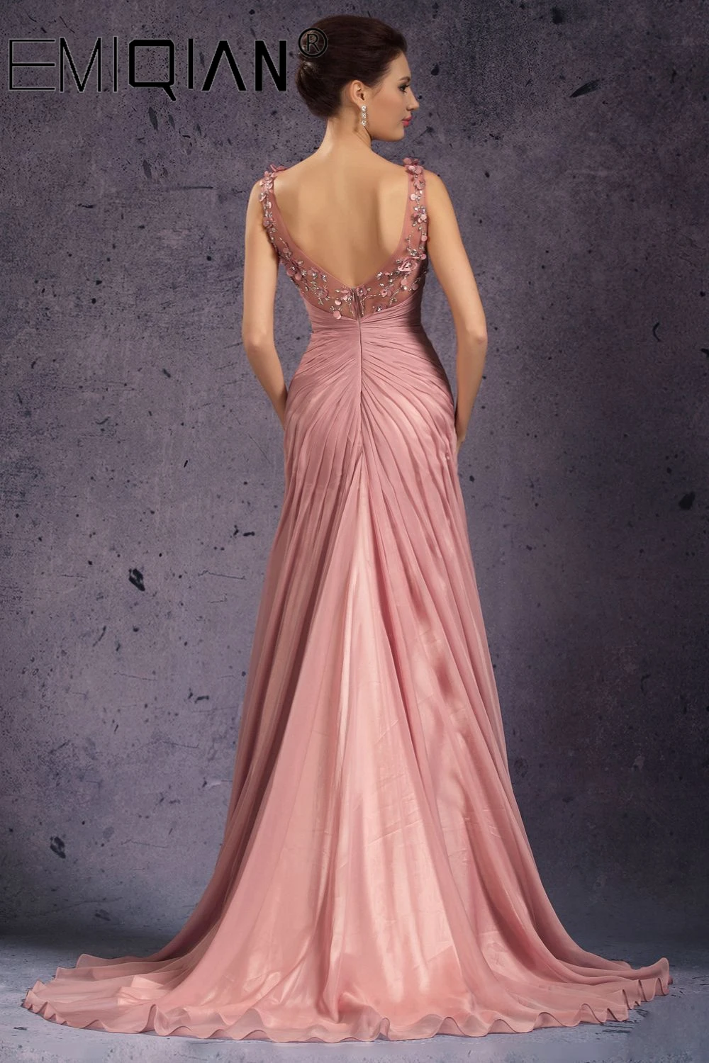 Вечернее шифоновое платье ручной работы с V-образным вырезом и бусинами
