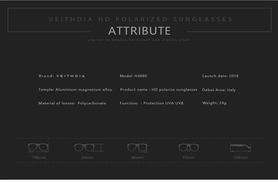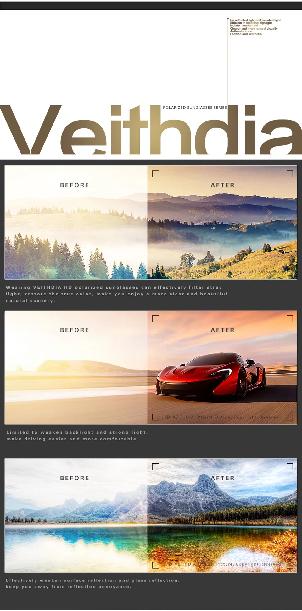 Бренд VEITHDIA, мужские солнцезащитные очки из алюминиево-магниевого сплава, поляризационные, UV400, линзы, аксессуары, мужские солнцезащитные очки для мужчинженщин, 6880