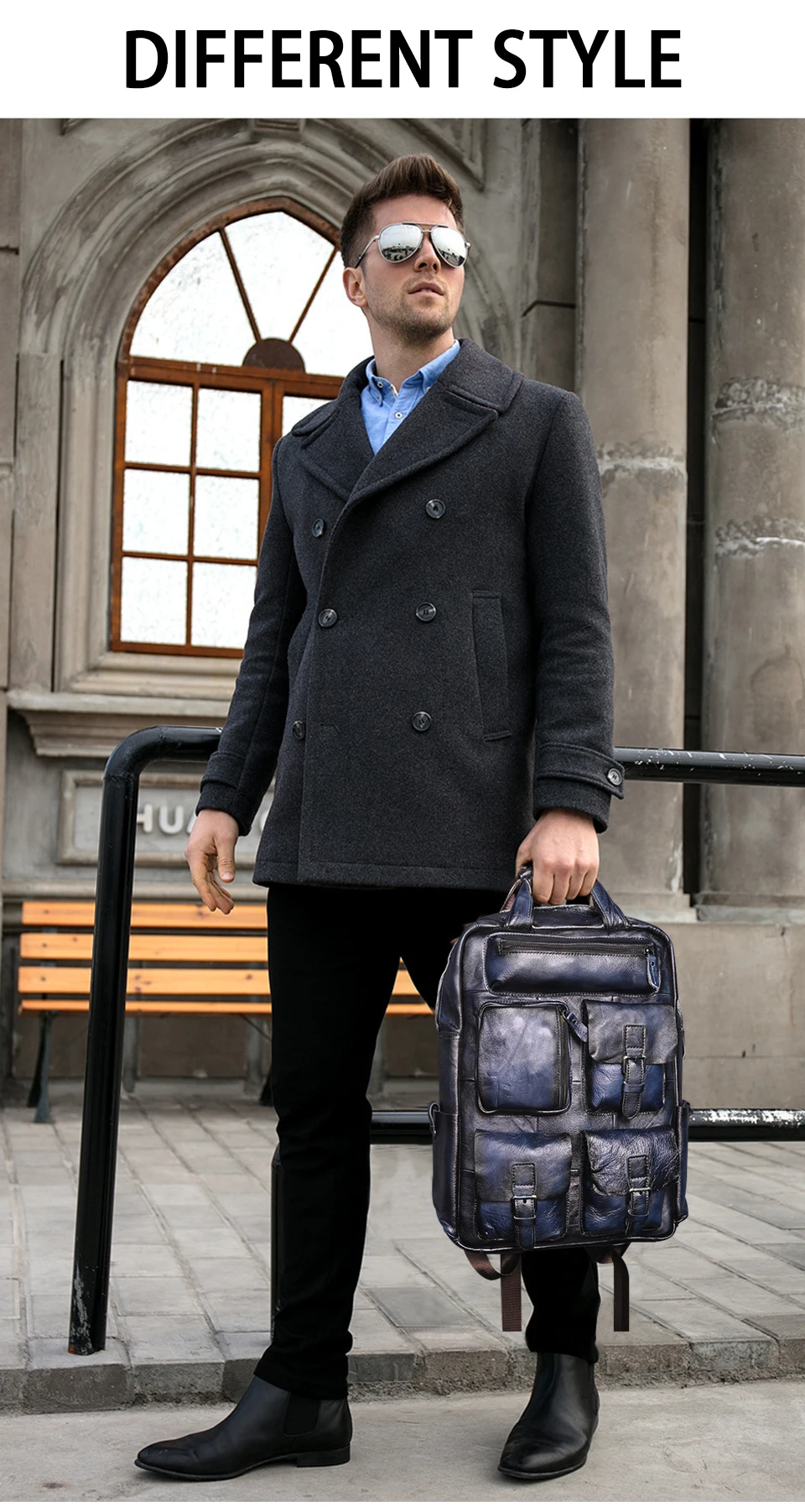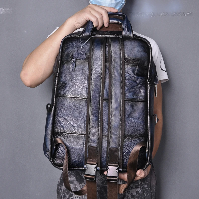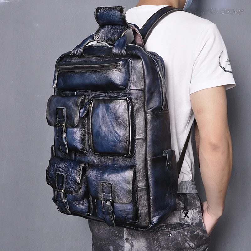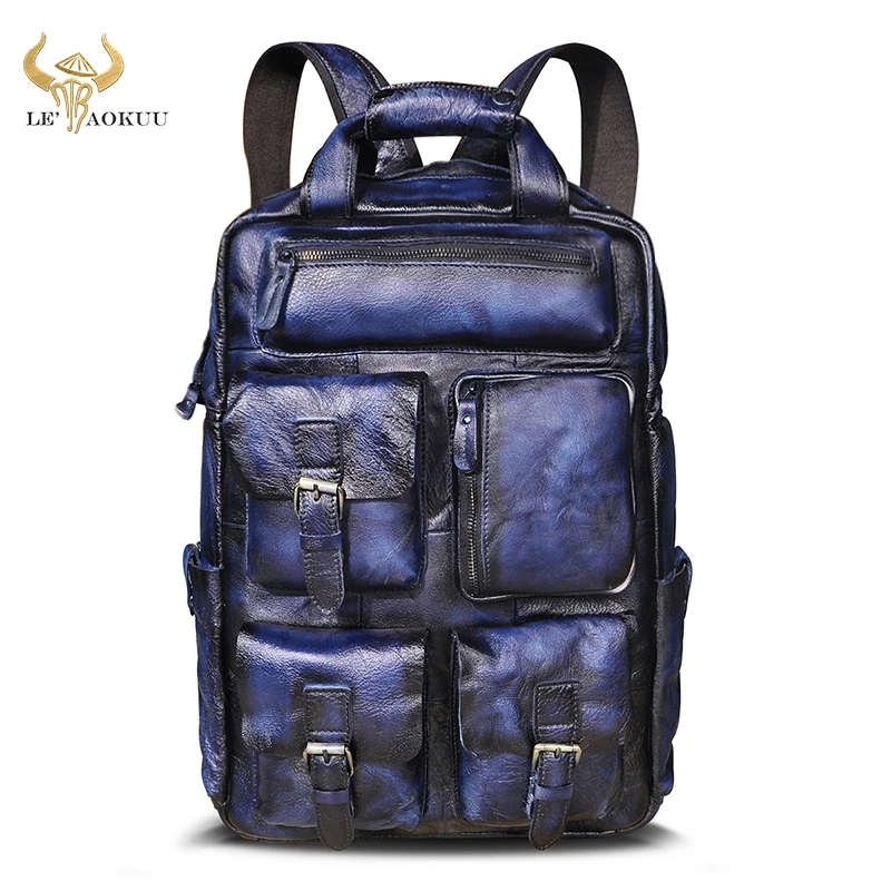 Мужской Оригинальный модный синий дорожный рюкзак из натуральной кожи для учебников колледжа дизайнерский Мужской Рюкзак Студенческая сумка для ноутбука 1170