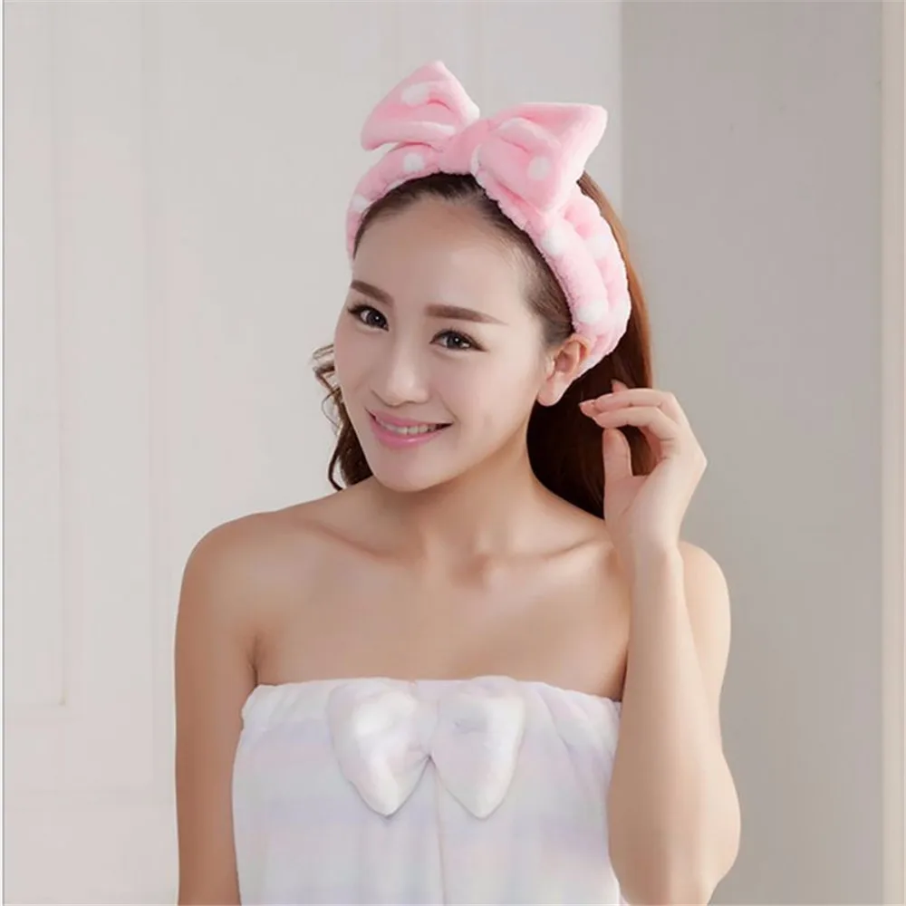 1 шт. бант повязка на голову для девочек и повязка на голову; Резинка для волос, обтянутая тканью; Полос мягкий коралловый флис женские аксессуары для волос для мытья лица Душ Спа-маска