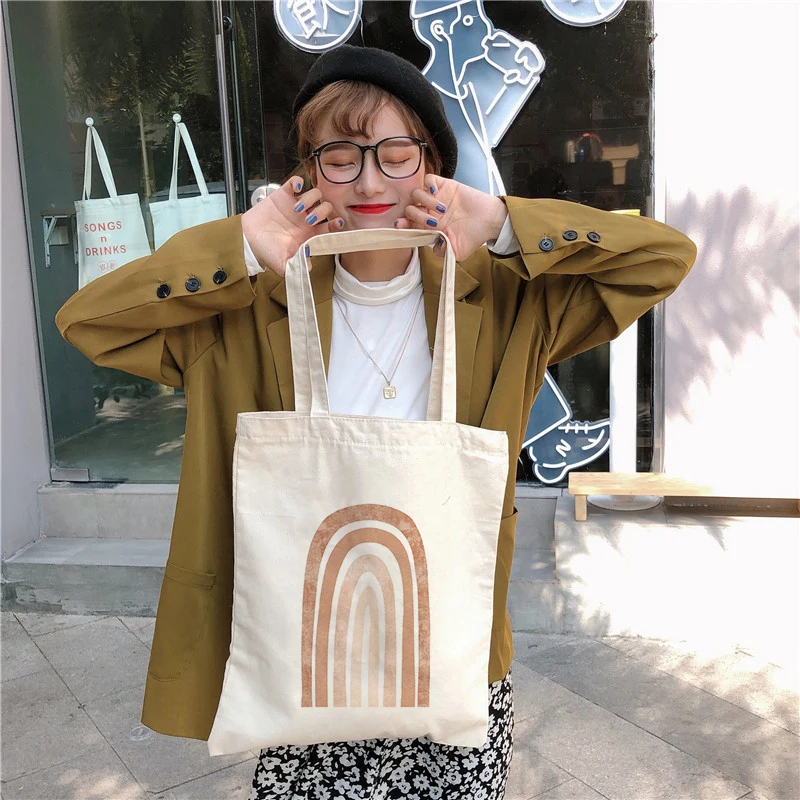 Радужная хлопковая Холщовая Сумка, Женская Повседневная сумка на плечо, женская сумка, многоразовая сумка-тоут большой емкости, Студенческая книжная сумка