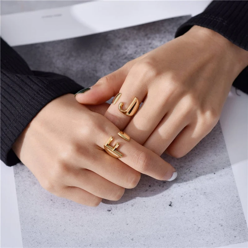 Минимализм A-Z Начальной Кольца для Для женщин ювелирные изделия Обручение подарки Нержавеющаясталь заявление ожерелье буквы алфавита кольцо Bague Femme 2021